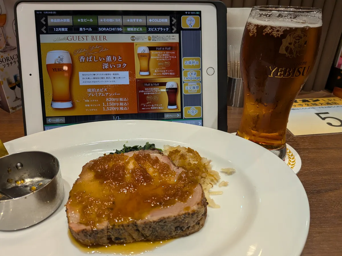 これに合わせるはやはり琥珀エビスプレミアムアンバー!脂身が少なくて食べやすく柔らかい!うみゃ〜‼️😋