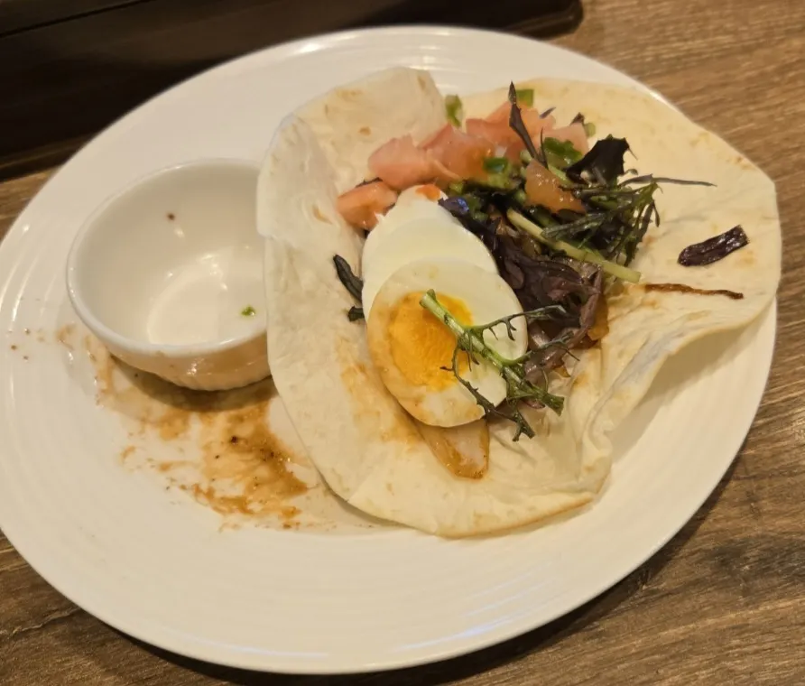 期間限定メニューの鴨の照り焼きタコスSサイズ🌮鴨のわさびロースト🦆