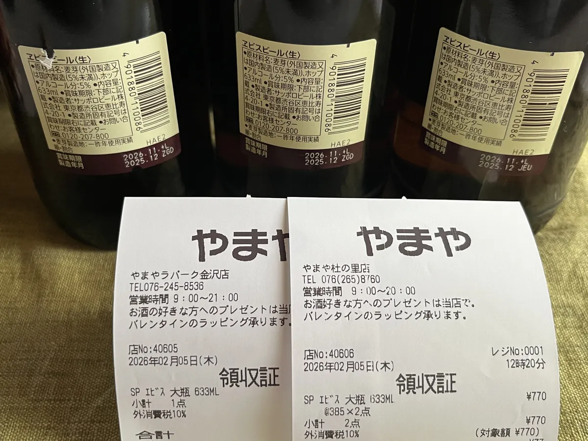 さらに気をよくして行った 3軒目、4軒目では残念ながら 出逢えませんでしたが 今日は1日に3本ものラッキーヱビスに 出逢えたいいお休みとなりました🎶🤭