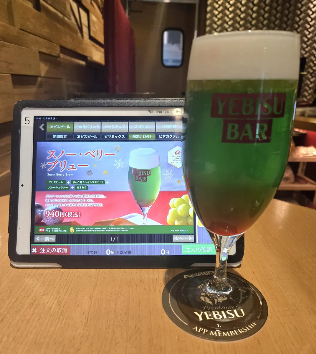 入店すると馴染みのスタッフさんから、今日の1杯目はこれですよね☝️とタブレットのスノーベリーブリューの画面にされる😅今日の為に用意したビヤカクテルです❗と全力でおすすめされる😅