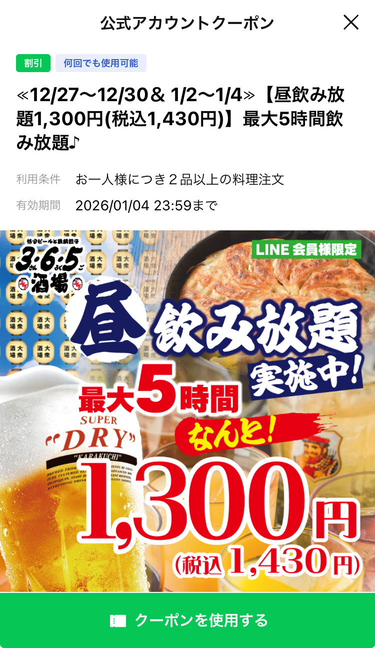トップ > ヱビスフォト > 5時間耐久レース 予告編 kazzyer 2025/12/28 05:05 5時間耐久レース 予告編 いや〜年末ぼっちのあちきにとっては遅れて頂いたクリスマスプレゼントですわ。 最大5時間税込1,430円で飲み放題!1時間あたり286円とな。当店ビール1杯218円だから破格すね。料理2品はマストですがフツウに食べれますわな。ありがたヤー!! 当然開店12時に予約。一樽開けますか。笑 いいね 共有する 共有する X facebook LINE リンクをコピー コメントする 2 件の返信 (新着順) ミュートしたユーザーの投稿です。 投稿を表示 瞹❣️ 2025/12/28 14:05 途中経過 お待ちしてます 近くなら応援に伺いたい🍻 いいね 返信する ミュートしたユーザーの投稿です。 投稿を表示 あおちゃん 2025/12/28 07:38 お値打ちな企画です。 浜松には店が無さそうです。 残念です。 いいね 返信する