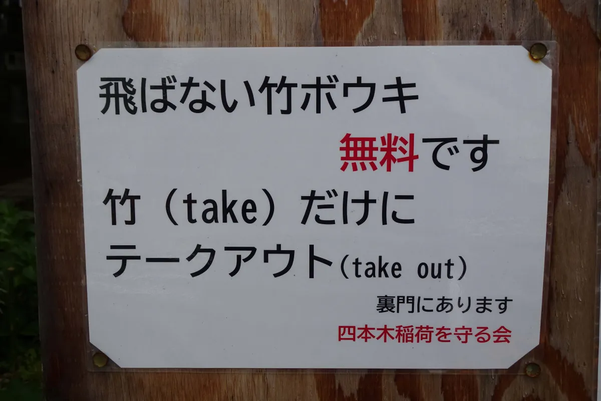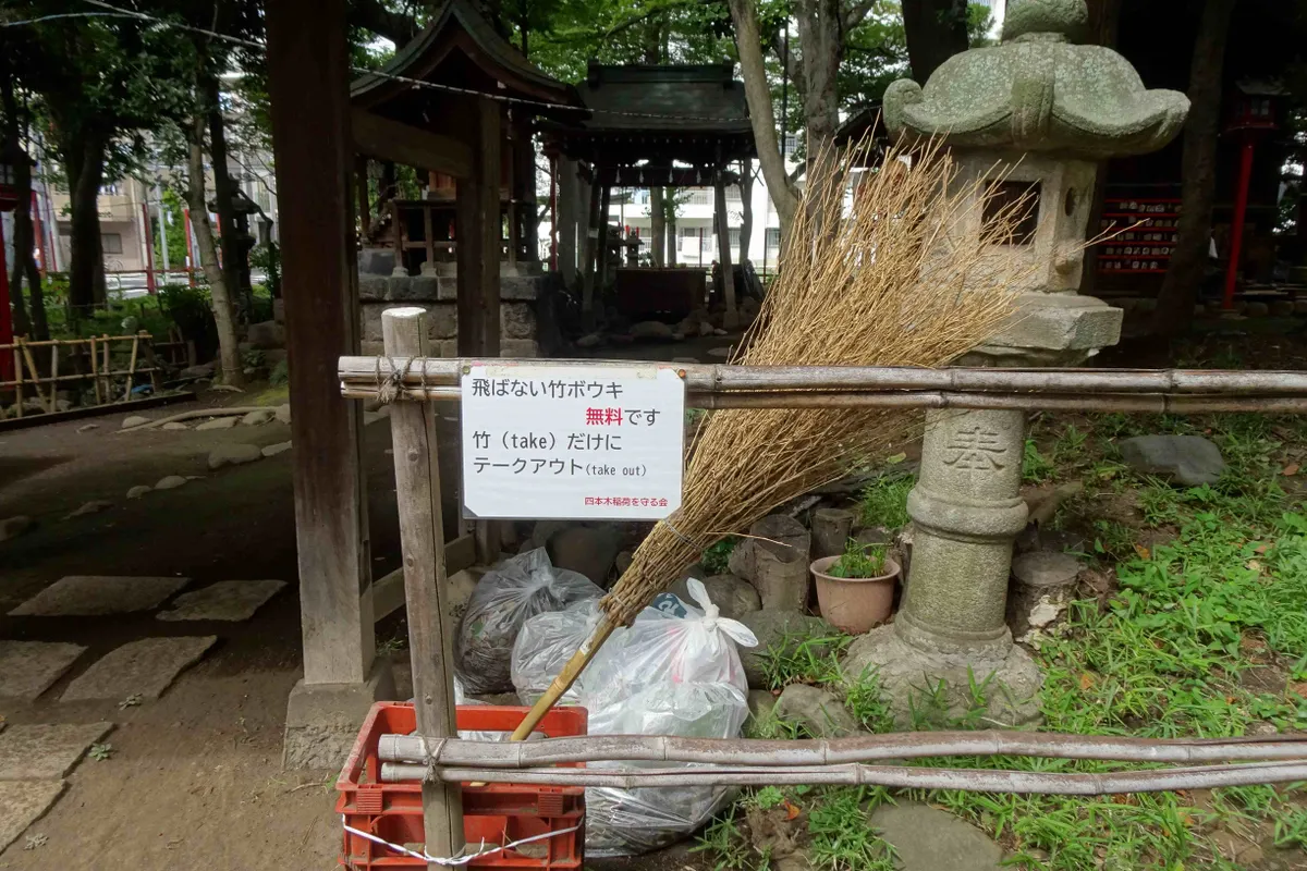 そして表に貼ってあった通り、無料の竹ぼうきです。
