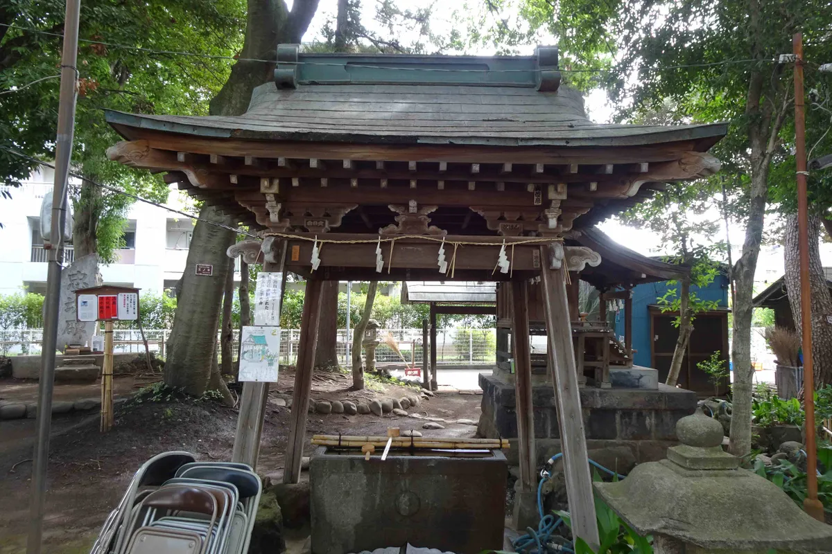 これが今の手水舎ですが、なぜかパイプ椅子が。