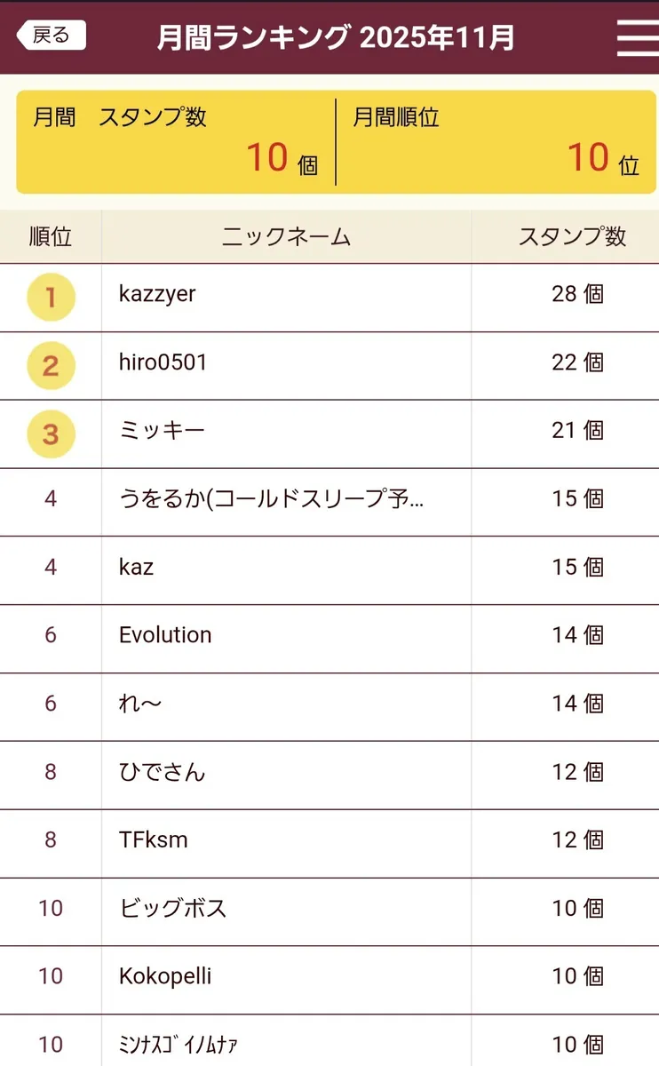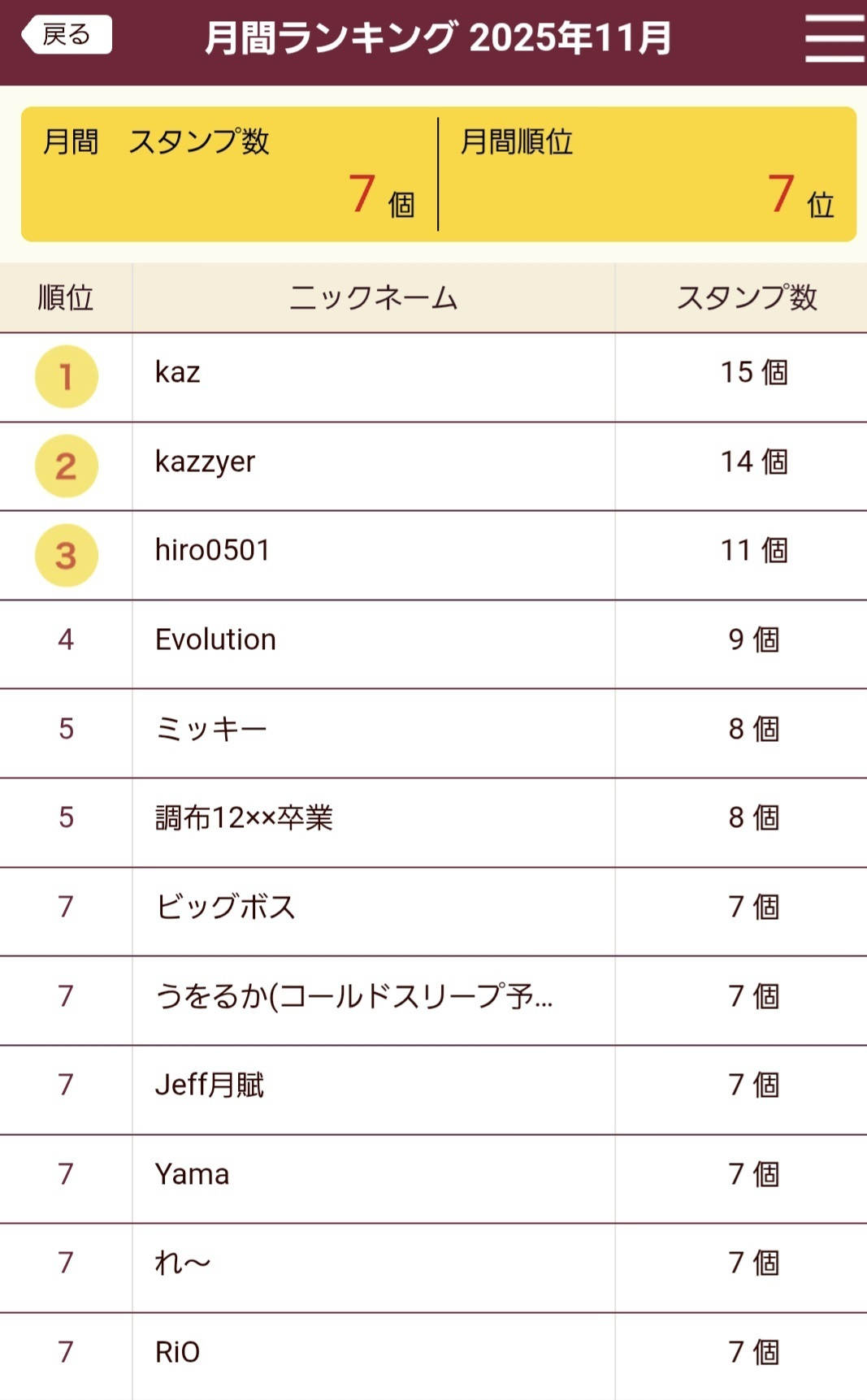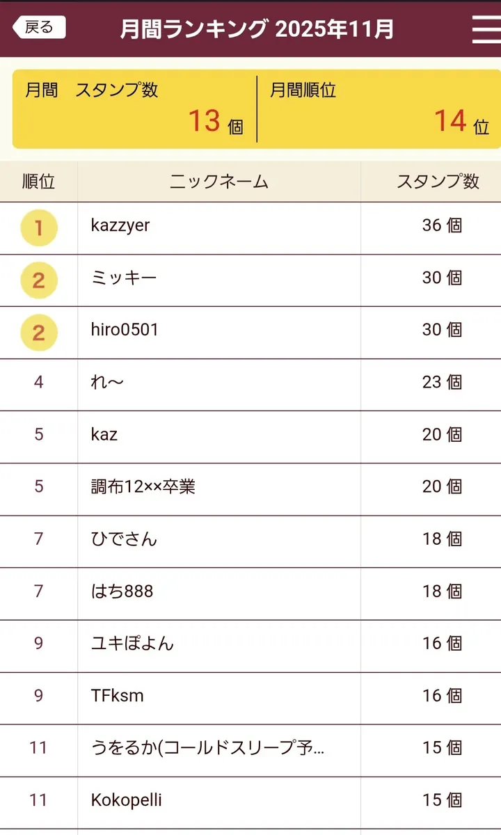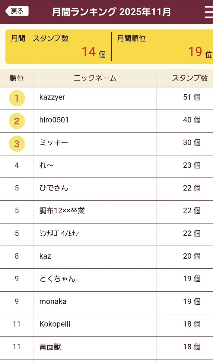 初日7位→10位→14位→19位😅