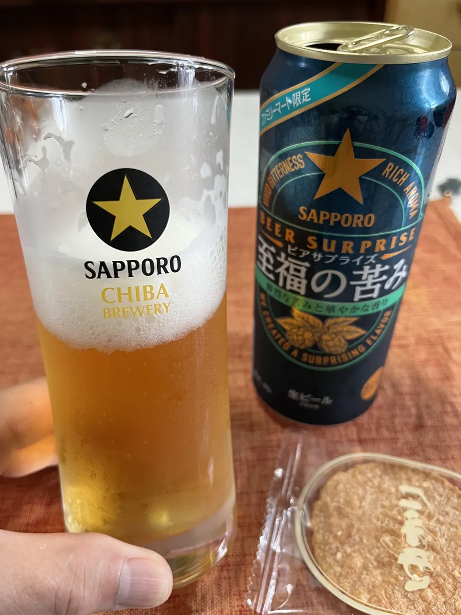 今日は仕事も順調で           何事もなく定時で上がり🎶        一目散に🏠に帰り🚿の後の       お待ちかねの昼飲み🍺😋        今月賞味期限のラスト1本        「ビアサプライズ至福の苦味」                           それも500mlで🤭            お疲れ様ぁ〜🎶かんぱぁ〜い🍻🍻🍻