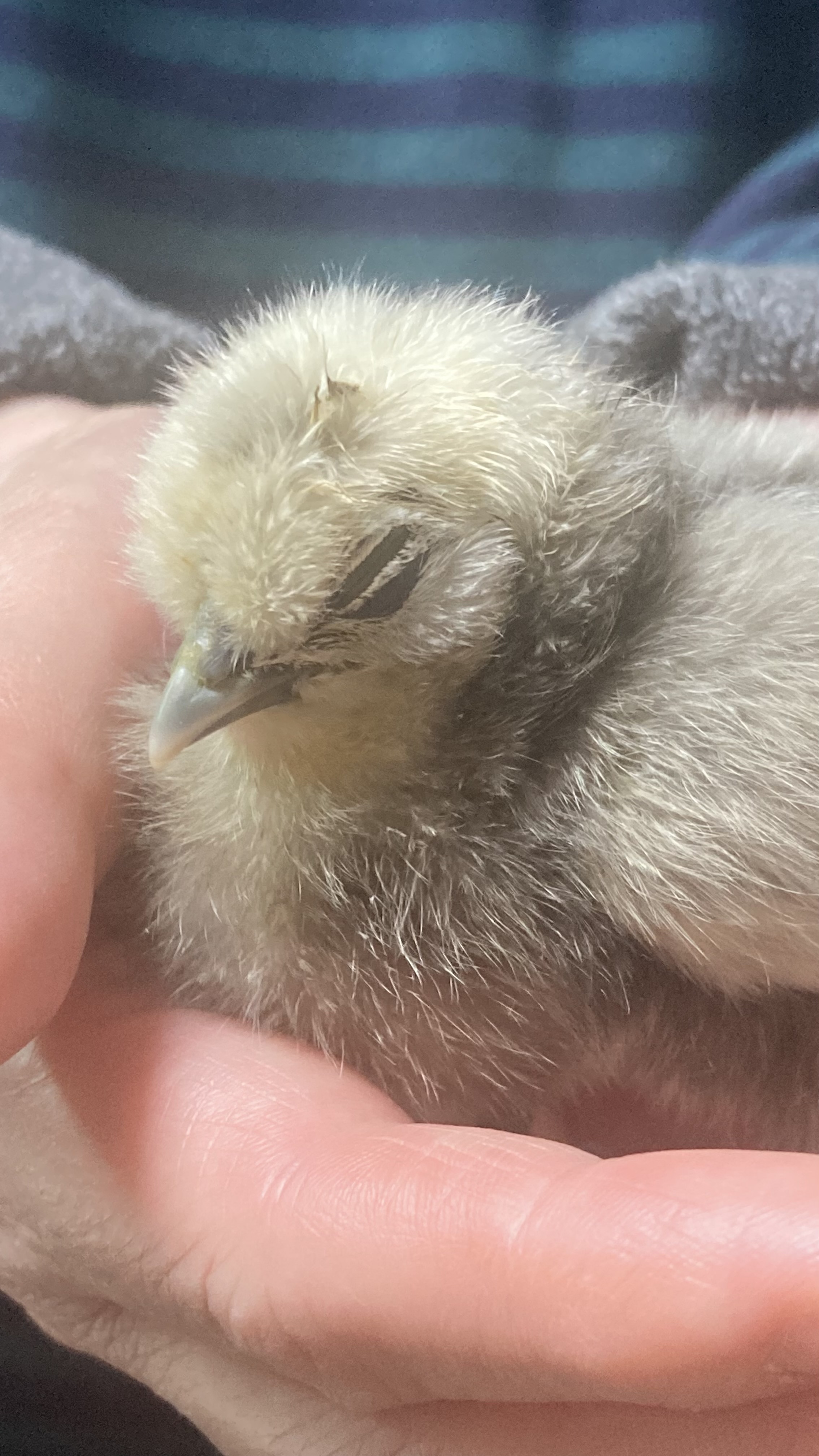 烏骨鶏の雛、手のひらで安心して寝てる姿