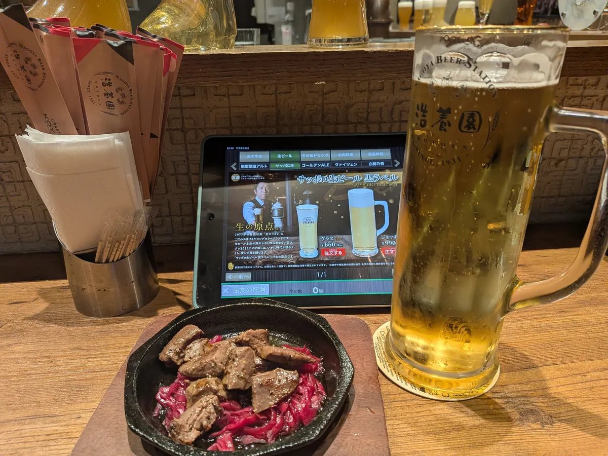 ラムハツのレモングリルと黒ラベルジョッキ泡少しで…!😆やはりラムハツは美味い!🤤
