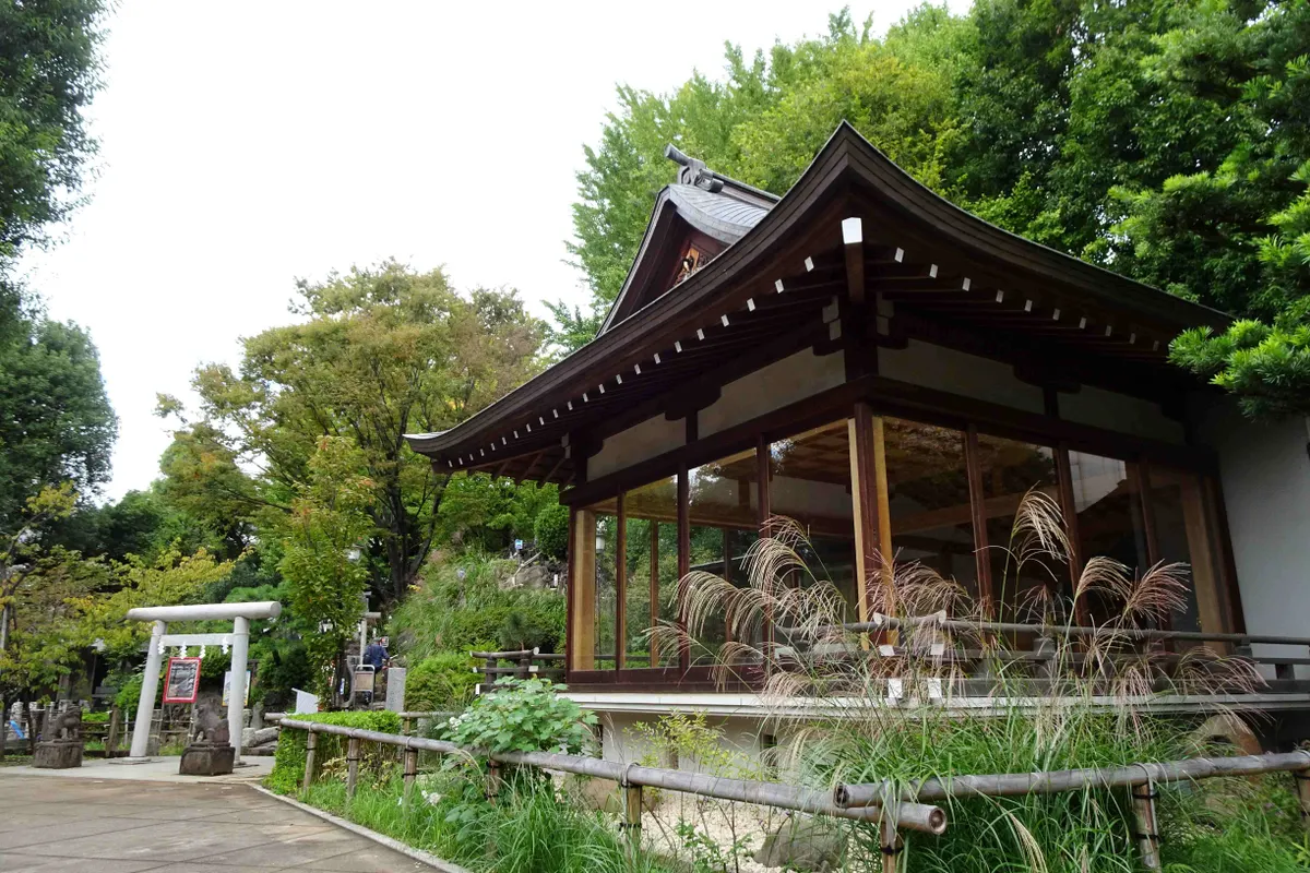 富士塚を上る途中にあるお社は、今回閉じられていました。