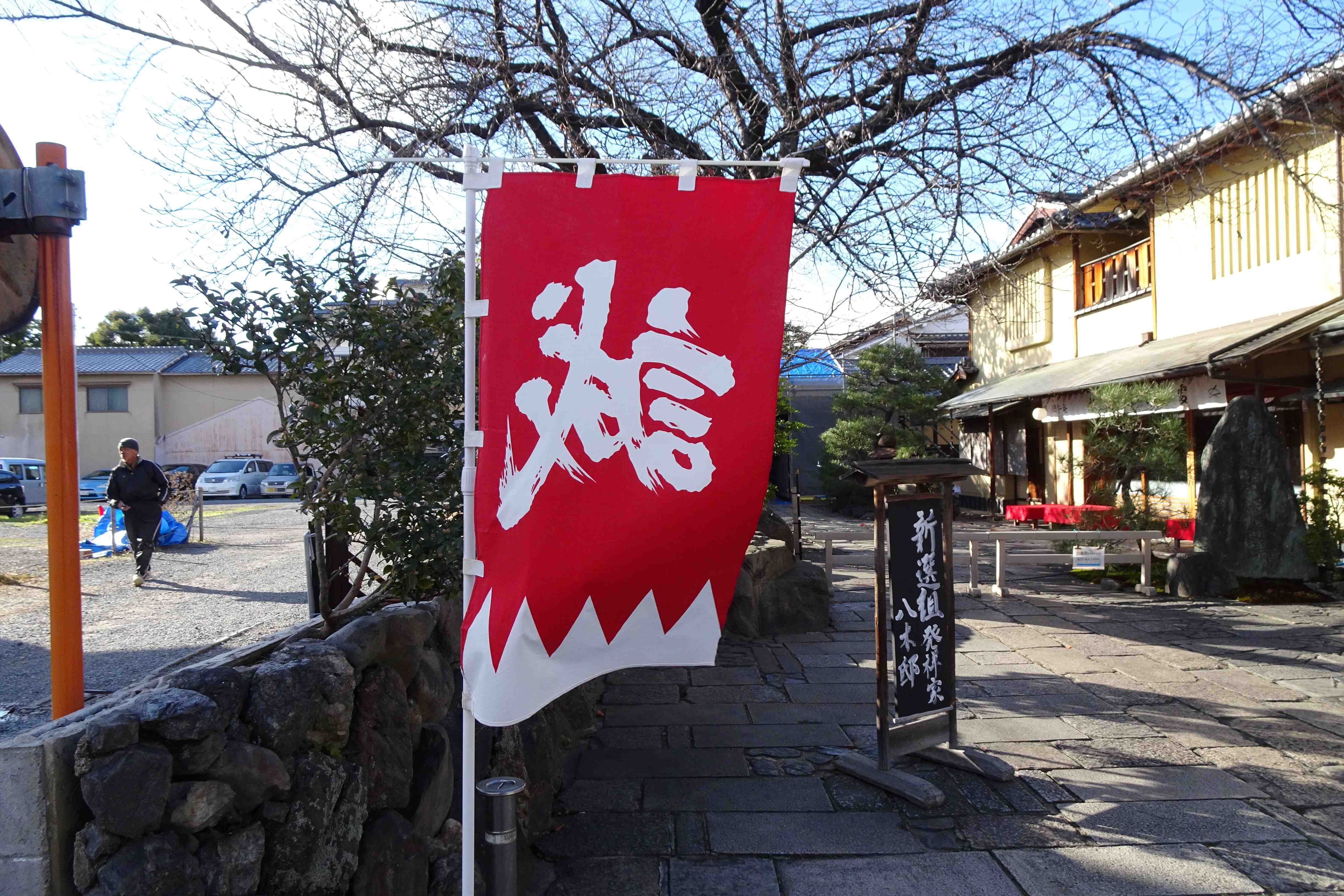 反対になっていますが、新選組の赤い幟が青空に映えていました。