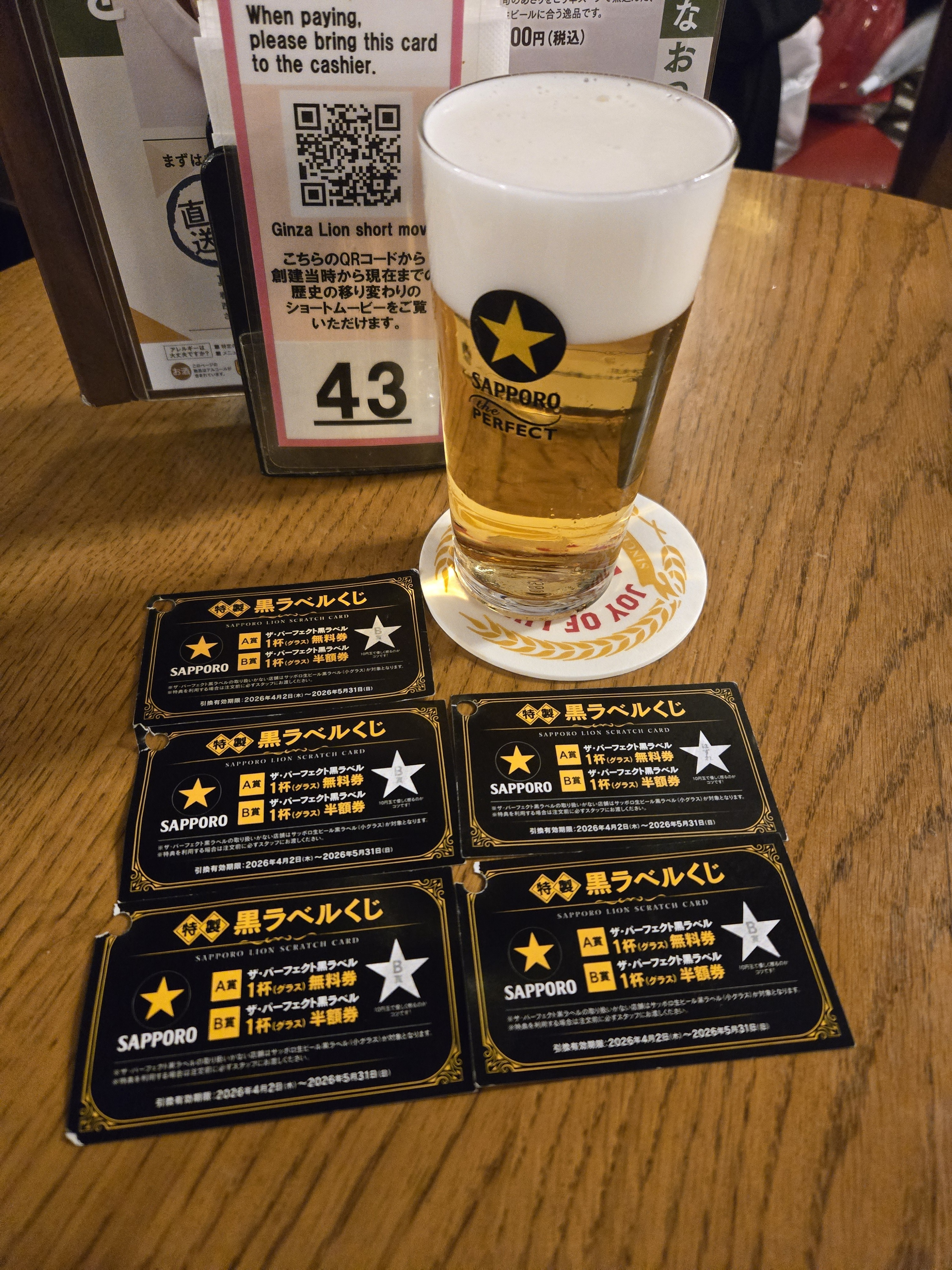 昨日のことですが、パーフェクト黒ラベルくじが千秋楽ということで行ってきました🍺
