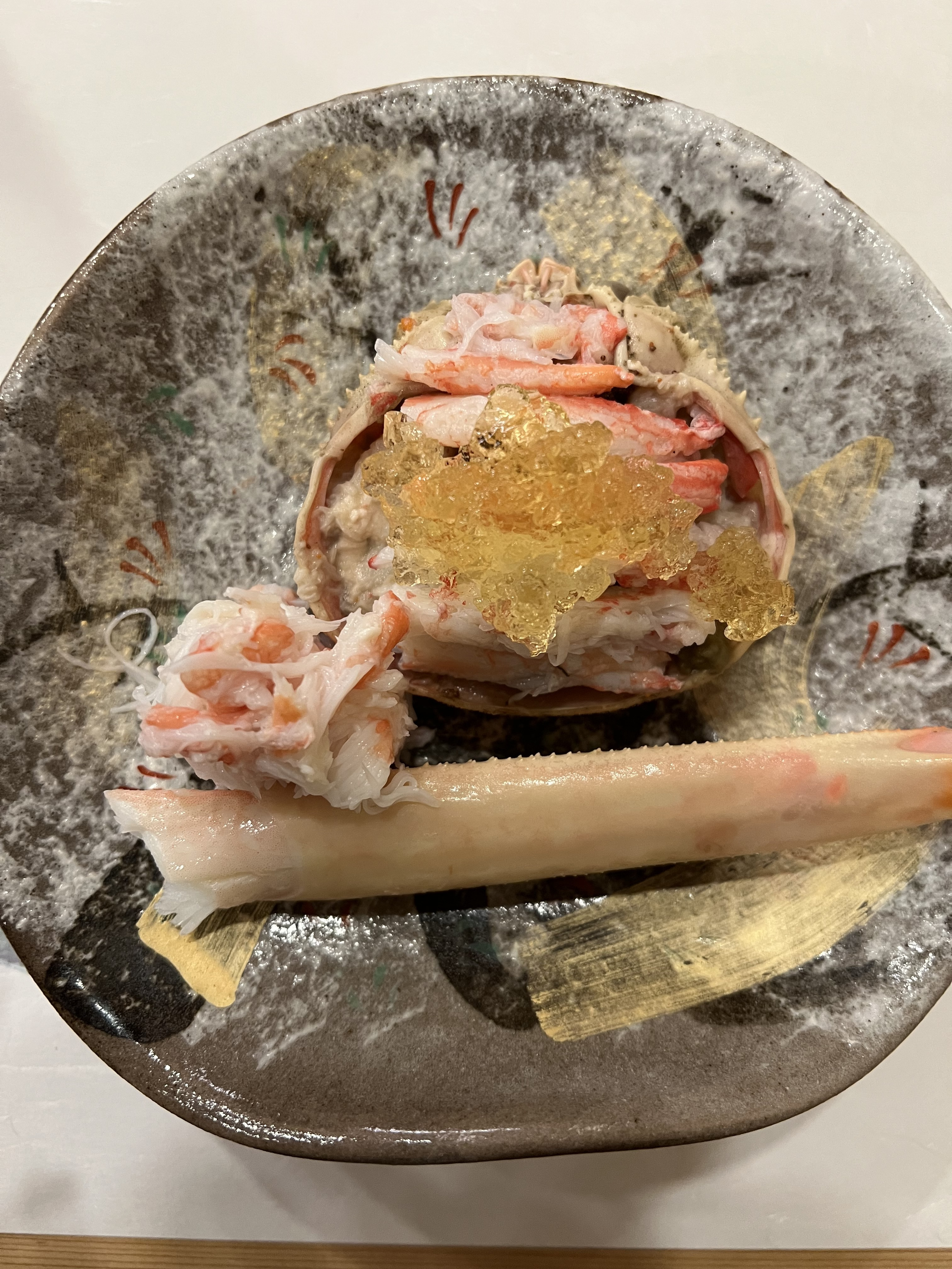 ズワイのメスを、ウォーズ特産の加積リンゴ🍎ジュレで頂く。😋
