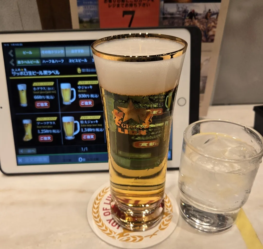 サッポロ黒ラベル小グラス2杯🍺🍺