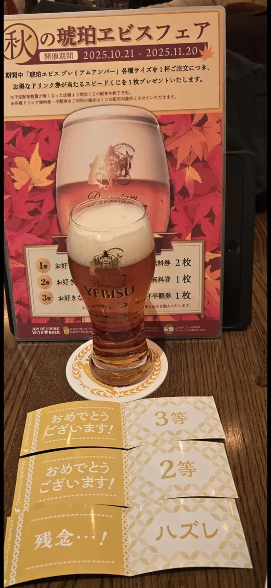 琥珀ヱビス4杯🍺🍺🍺🍺