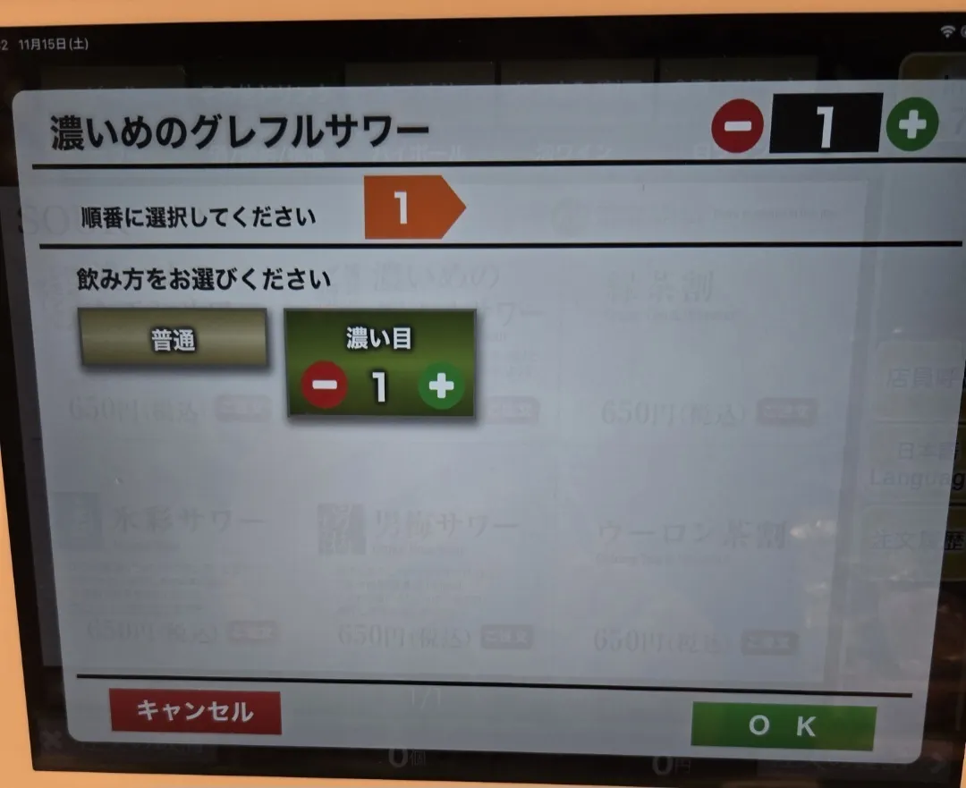 濃いめグレープフルーツサワーさらに濃いめ1杯