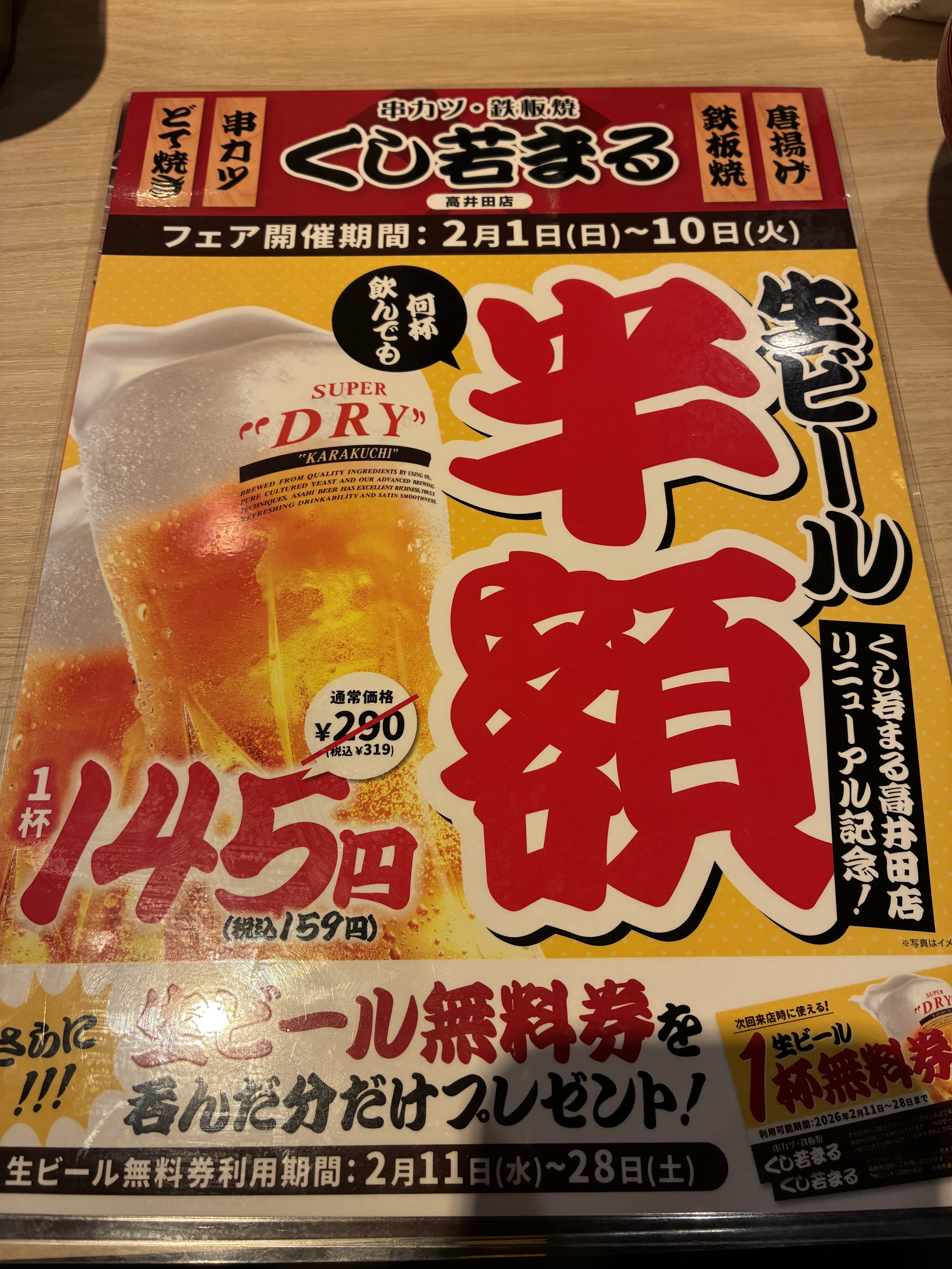 トップ > ヱビスフォト > グルメ・料理 > 生中半額 レオケン 2026/02/10 20:26 生中半額 本日最終日。 ドリンクラストオーダー22時30分。 まだ呑めますよ。 生中無料券ももらえますよ。 いいね 共有する 共有する X facebook LINE リンクをコピー コメントする 0 件の返信 (新着順)