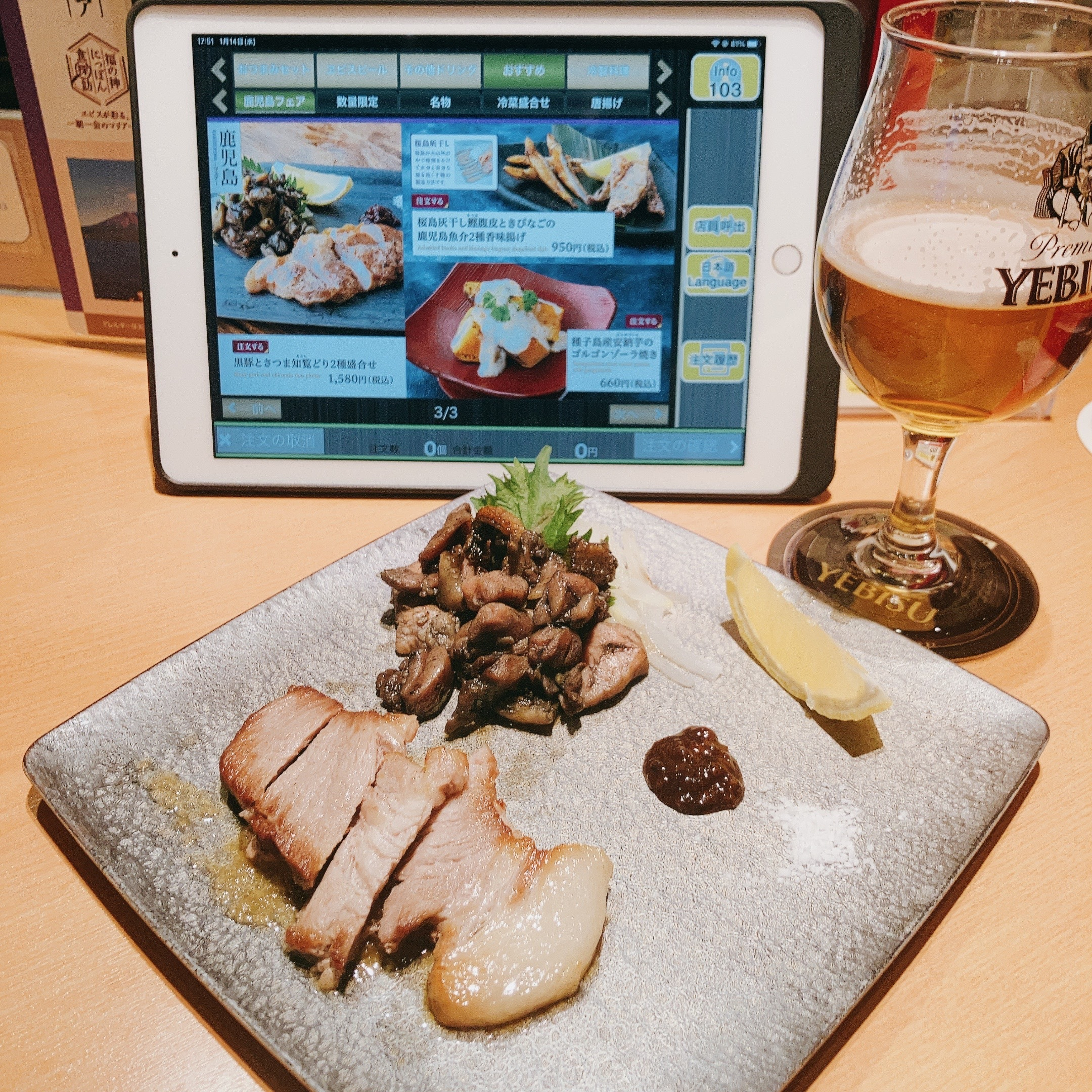 1,2月の「福の神 にっぽん食探訪」は鹿児島フェア。お目当ての料理は、黒豚とさつま知覧どり2種盛り合わせ!月間ランキングの特典を使用し無料で頂きました。2種共に絶品でしたが、とりわけ親鳥が大好物の私にとって知覧どりは嬉しかったです。レモンはエールの味変用、ちゃんと再利用しました。ご馳走様でした。