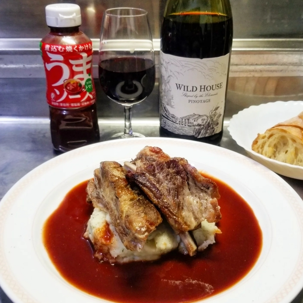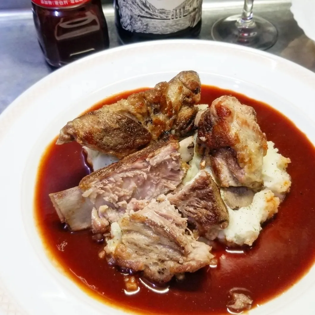 豚スペアリブの蒸し煮、赤ワインソースで。