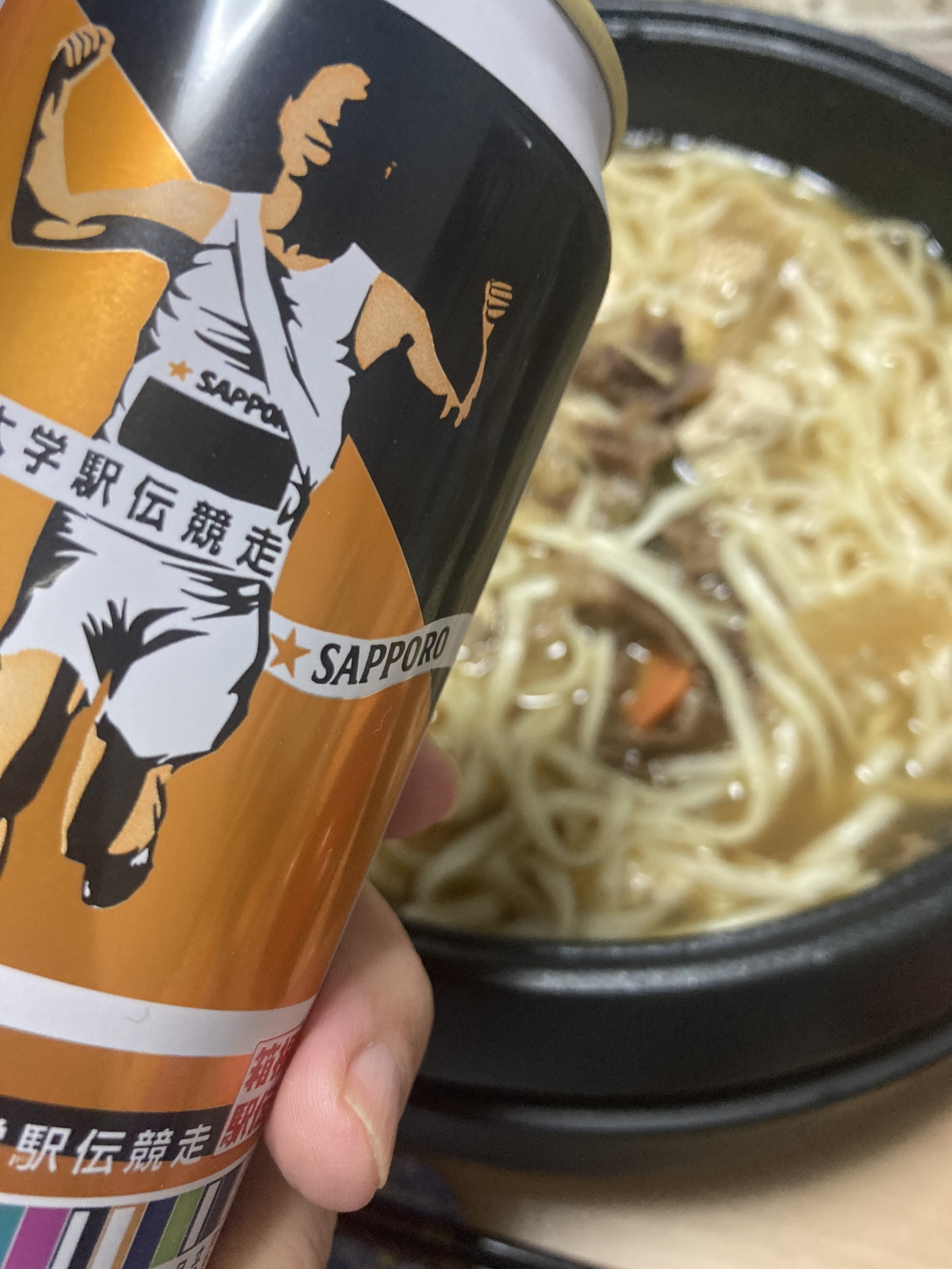 はい、私的うどんすきだと「甘めに作ったすき焼きに稲庭風の細うどんを合わせます」というコレが基本です。前夜のすき焼きのつゆのままだと濃ゆいので、そこはお湯を加えて調整します。そうしておいて、箱根駅伝を振り返りながらあらためて黒ラベルをいただきました。