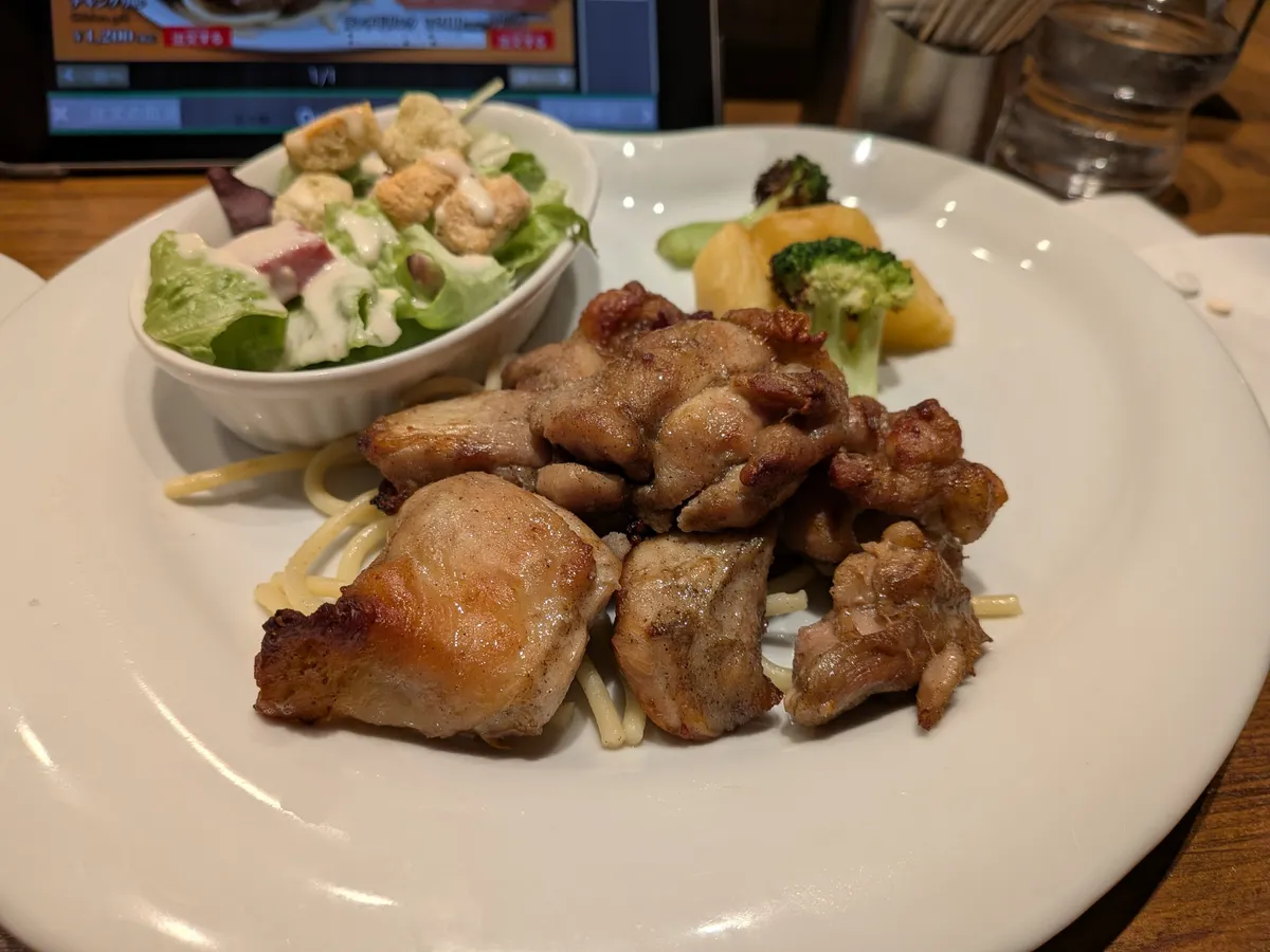 チキンソテーにライス大盛りで…!