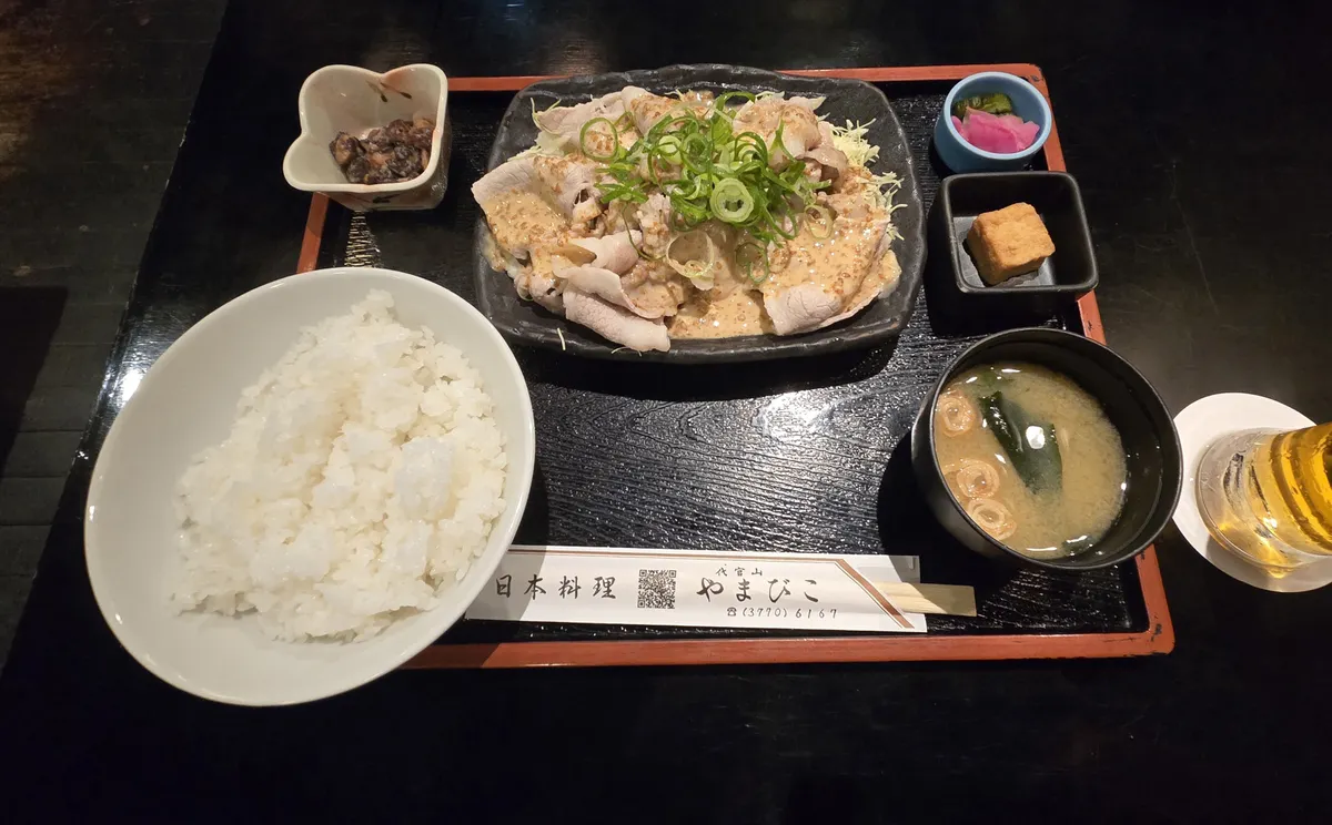 アテはランチタイムでXmasプレートを食べた後で、あまりお腹が空いていなかったけど、せっかくやまびこさんに来たので、日替りランチの豚しゃぶごまだれを注文🐷