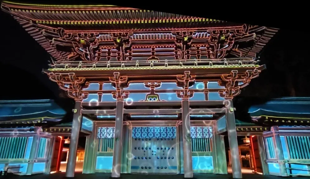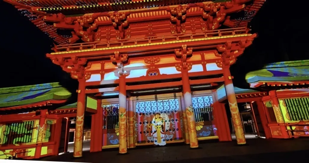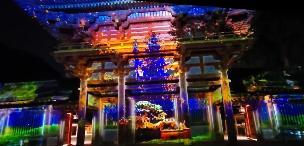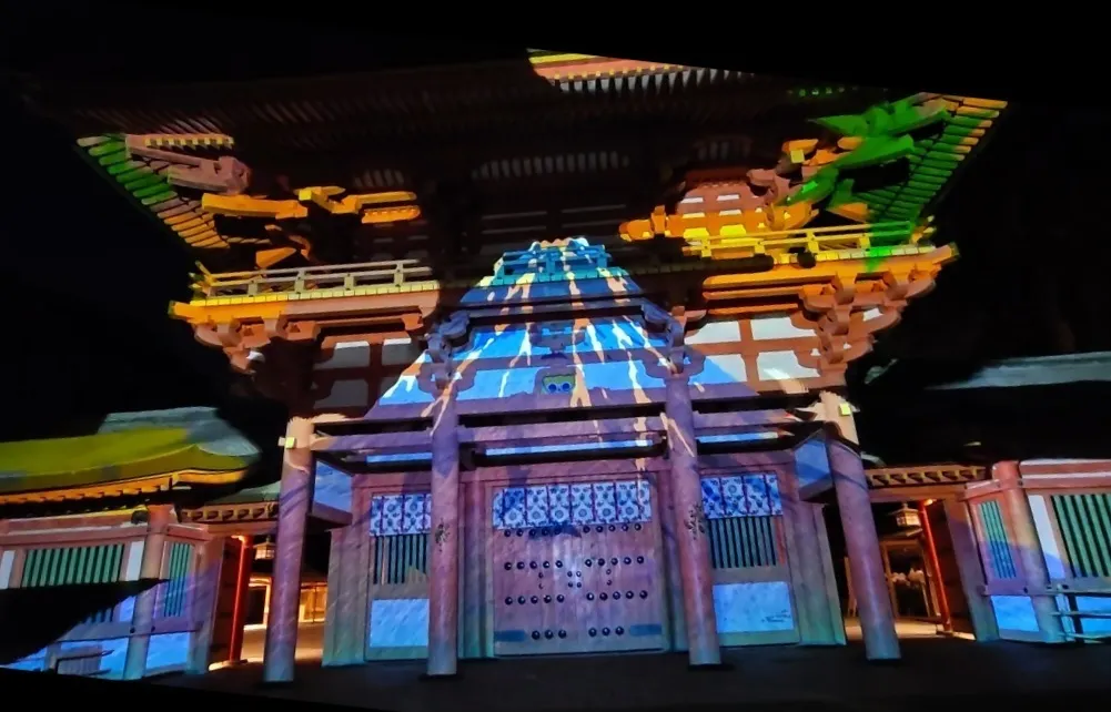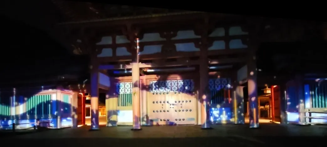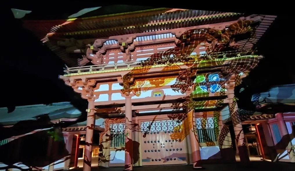 アイキャッチ画像の楼門ところにプロジェクションマッピングしまして、それはそれは幻想的で壮観で素晴らしかったです😊