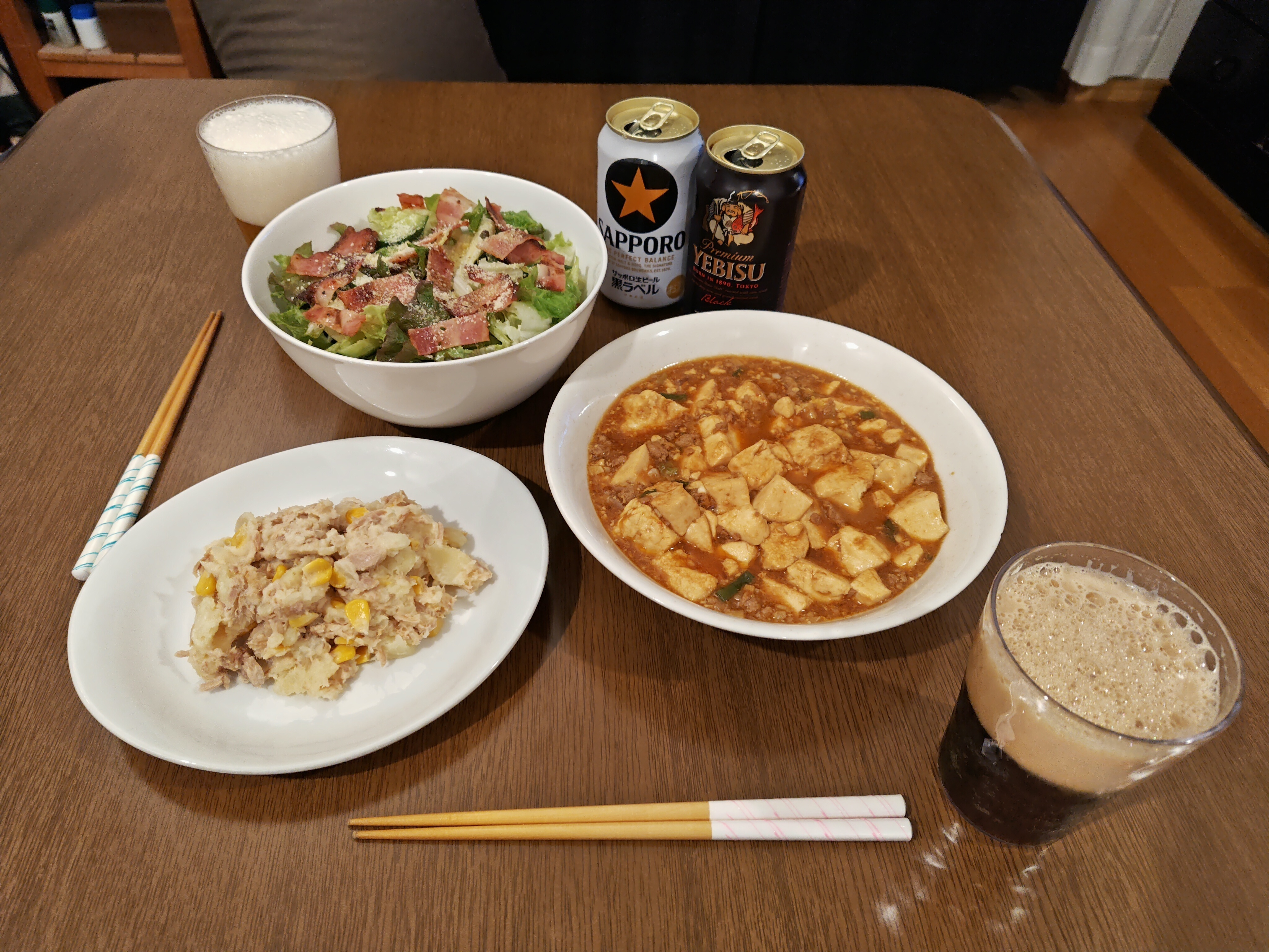 トップ > ヱビスフォト > グルメ・料理 > ある日の夕食〈258〉 白い耳とピンクの肉球 2026/03/01 20:22 ある日の夕食〈258〉 麻婆豆腐🐽⬜️ ツナコーンポテトサラダ🐟️🌽🥔 サニーレタス・キュウリ・ベーコンのサラダ🥗 【お酒】 サッポロ黒ラベル ヱビス プレミアムブラック 老松酒造 大分麦焼酎 プレミアムブラック いいね 共有する 共有する X facebook LINE リンクをコピー コメントする 0 件の返信 (新着順)