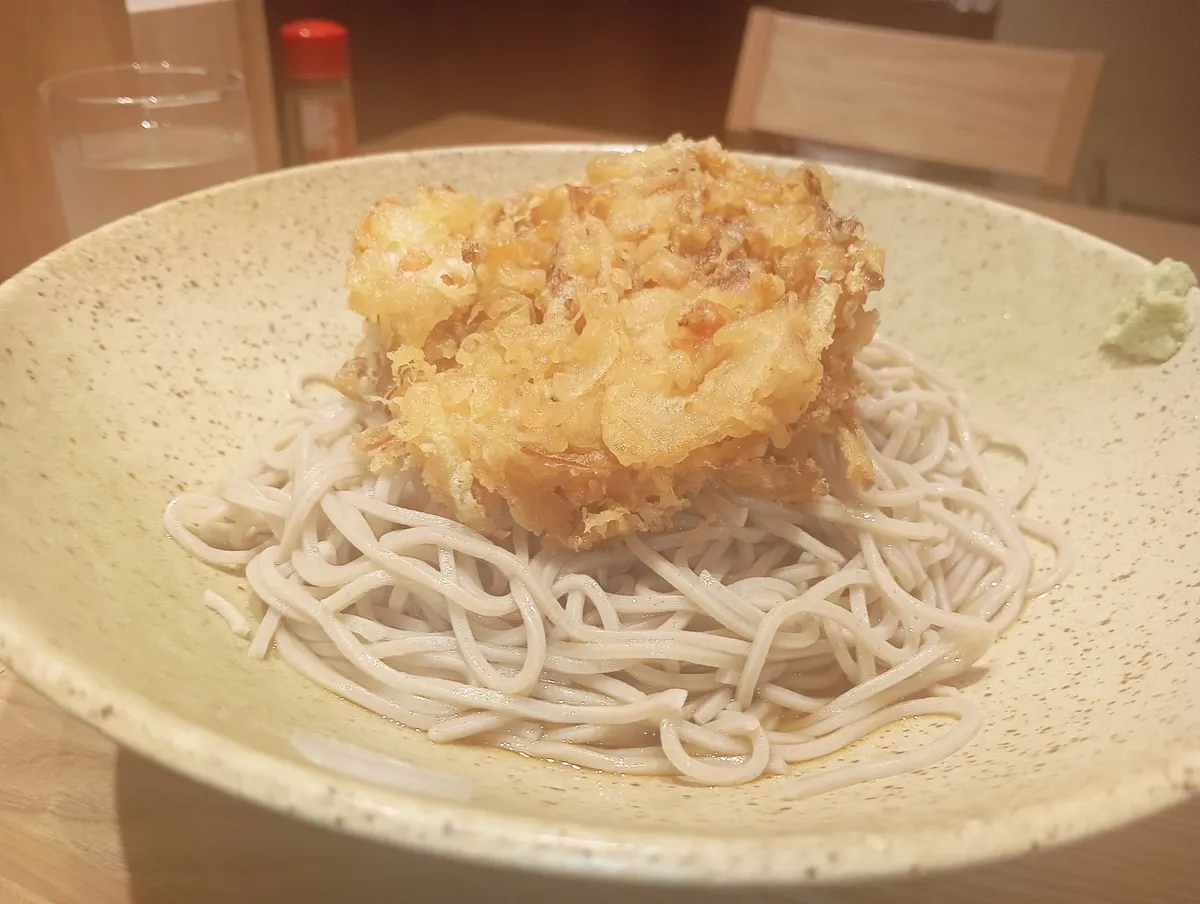 冷かき揚げ蕎麦大盛りを…!これで710円!😉かき揚げ、海老も入っていて美味しかった〜!🤭😆