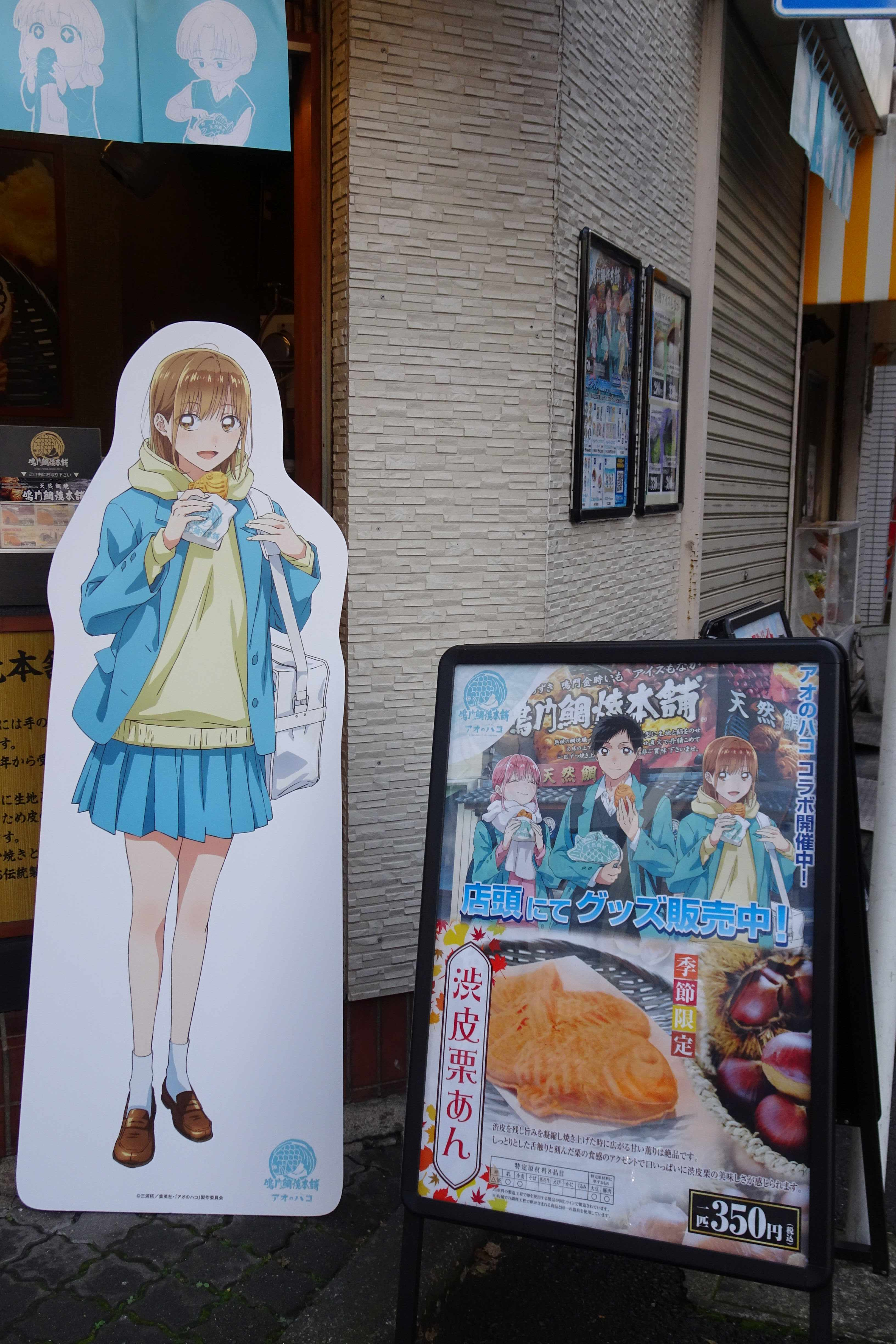 トップ > ヱビスフォト > 季節の写真 > アオのハコ×鳴門鯛焼本舗 なおなおっぴ 2026/01/10 18:58 アオのハコ×鳴門鯛焼本舗 11月1日土曜はまず目白庭園に向かっていたところ、途中にある鳴門鯛焼本舗が開店前なのに店を開けていました。 この日から始まる「アオのハコ」とのコラボで、飾り付けをしていたようです。 いいね 共有する 共有する X facebook LINE リンクをコピー コメントする 1 件の返信 (新着順) ミュートしたユーザーの投稿です。 投稿を表示 legacy 2026/01/10 20:41 アオのハコって、何ですか🤔😎👍👏。 いいね 返信する ミュートしたユーザーの投稿です。 投稿を表示 なおなおっぴ 2026/01/10 23:37 legacyさん アニメ化された週刊少年ジャンプ連載の漫画です。 いいね 返信する