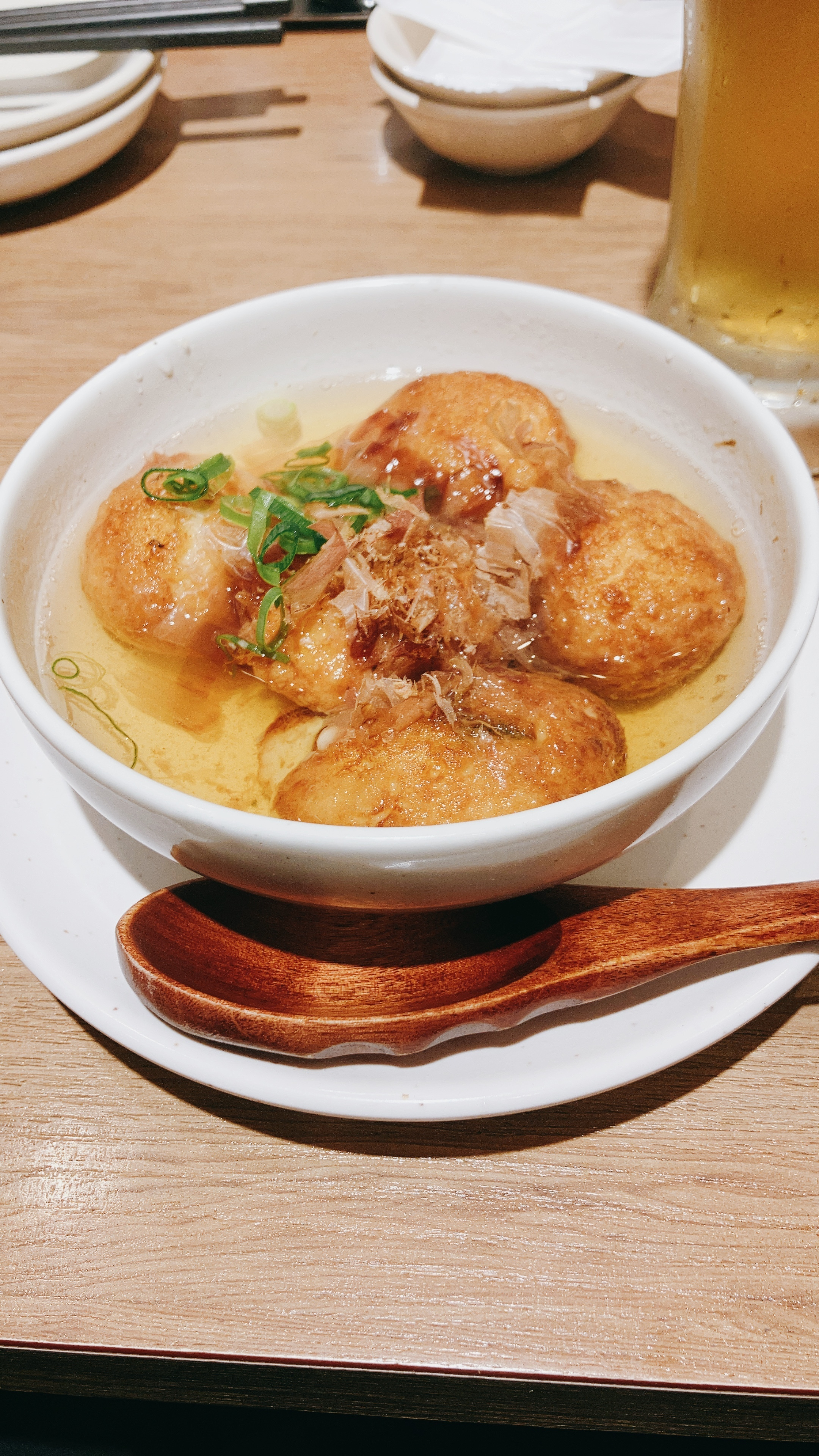 当店では酒場の明石焼き風、お好み焼きと粉物を、これがまたうんまい。ラーメン屋さんも行ったからリアル炭水化物係(たんすいばけものがかり)粉物集中編みたいな。笑