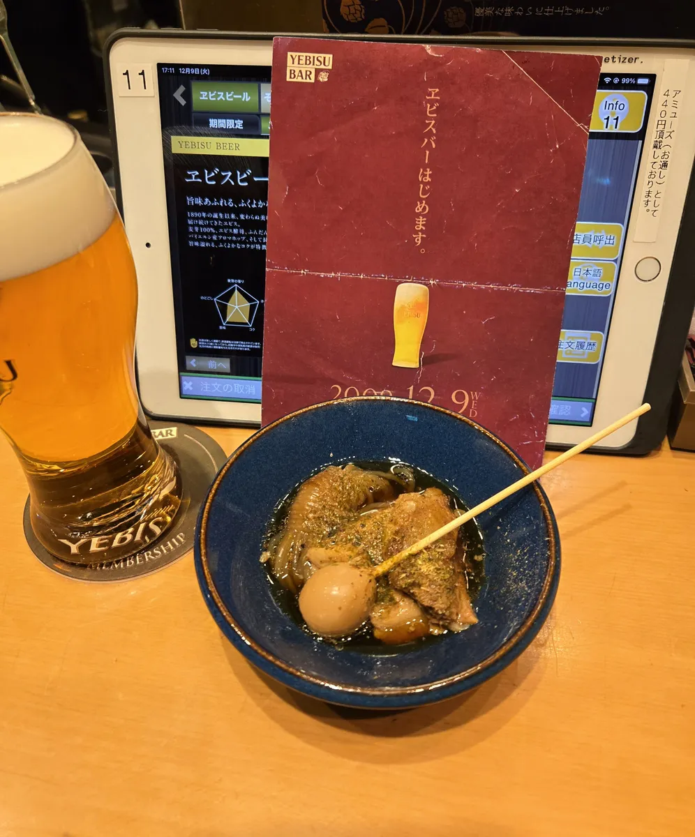 ヱビスビール、ブラック、琥珀ヱビスに浸けこんだ料理がいくつかあり、その他のメニューも目新しかったです。
