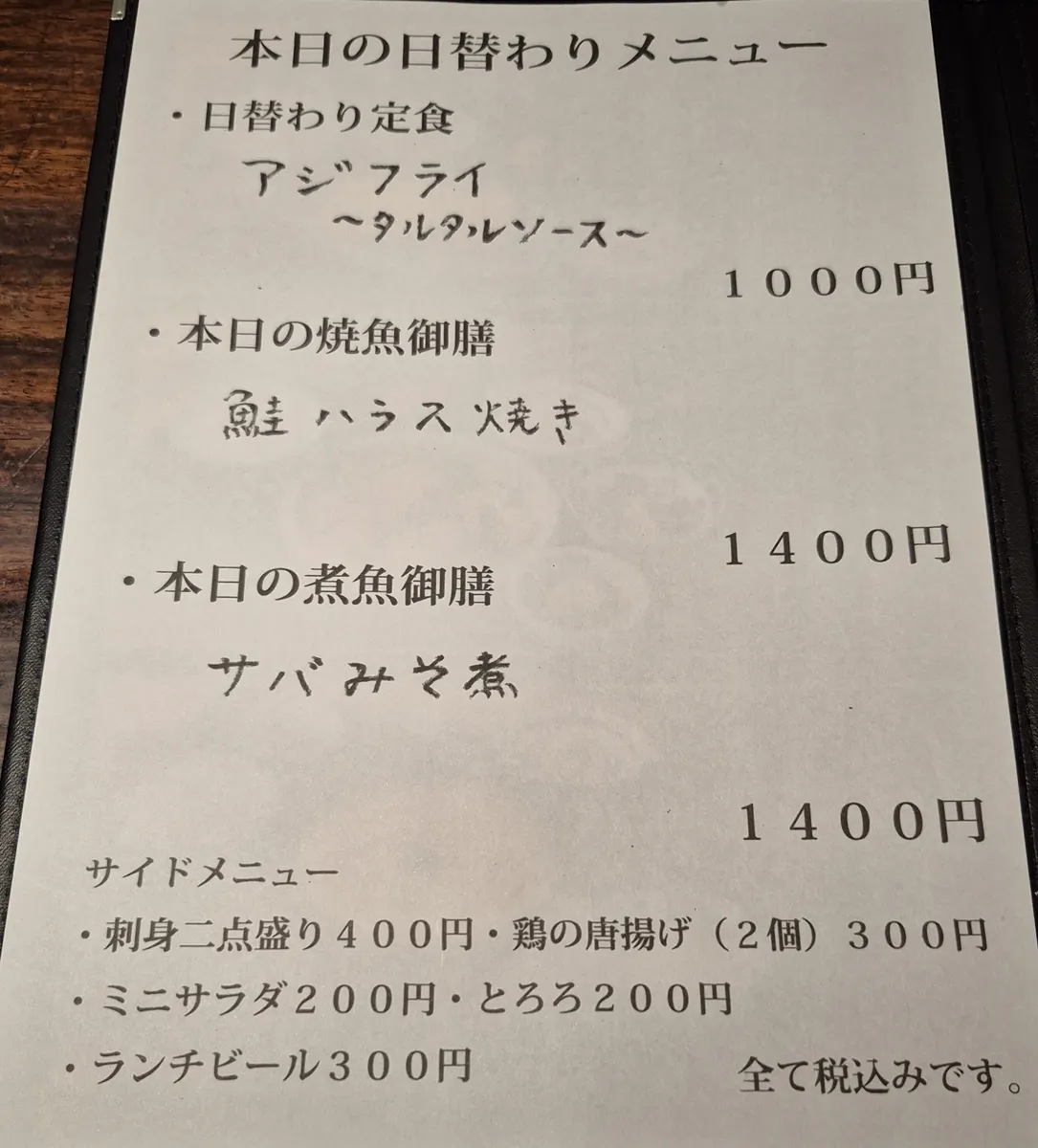 ↑↑↑五反田駅近くのお店。日替わり定食を選択♪︎~。アジフライ2枚…肉厚でボリューミーです。ビールはランチビール(ヱビス)300円です。↓↓↓
