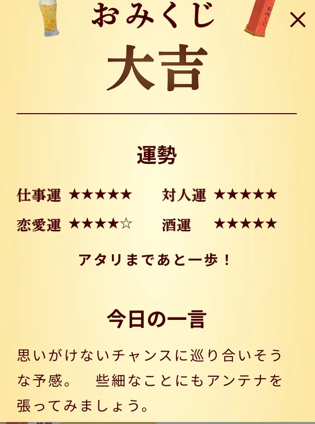 生地の食感に興味があったのに、ちょっと残念。食べましたけど。という具合に肩透かしをくらった私の今日の運勢は