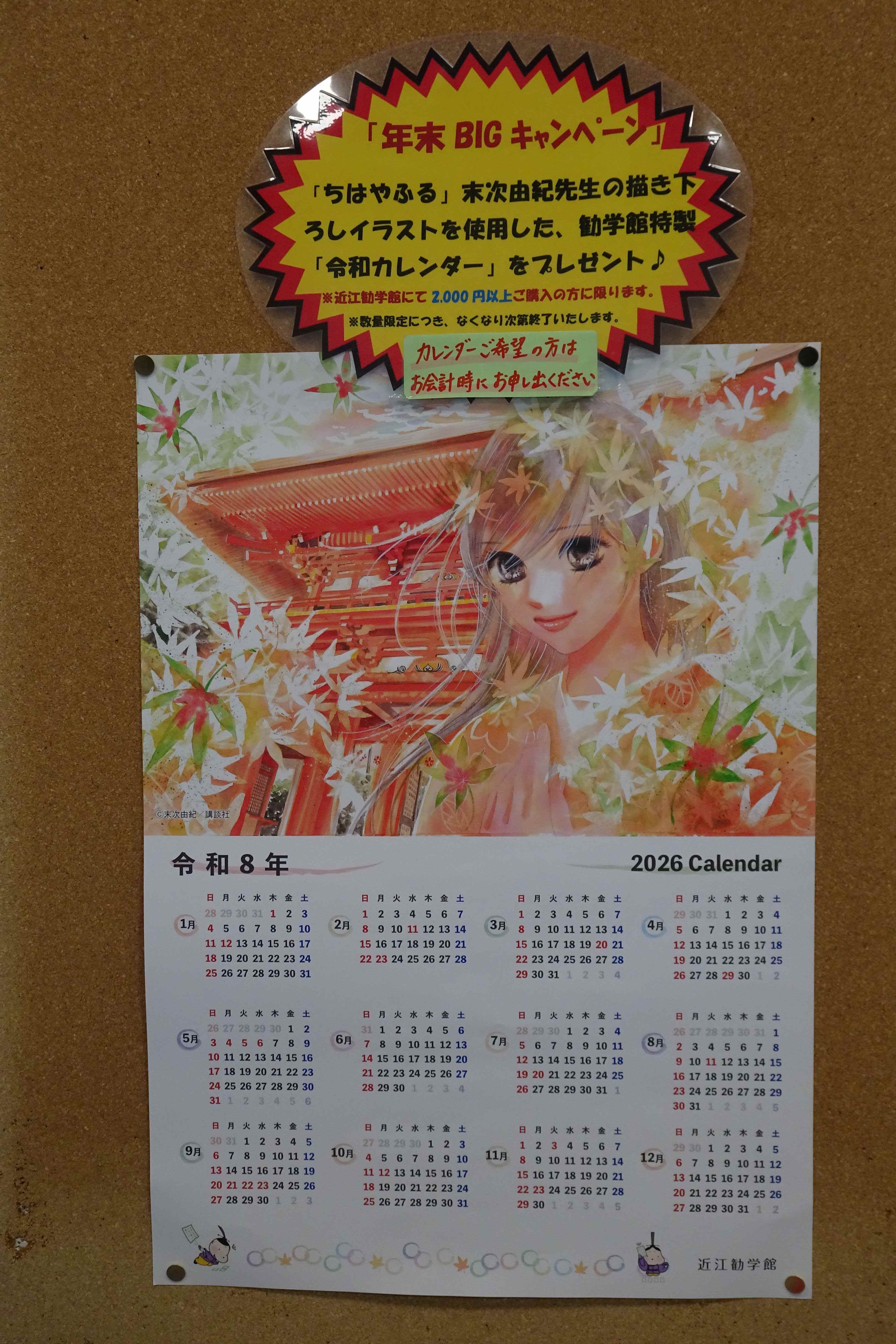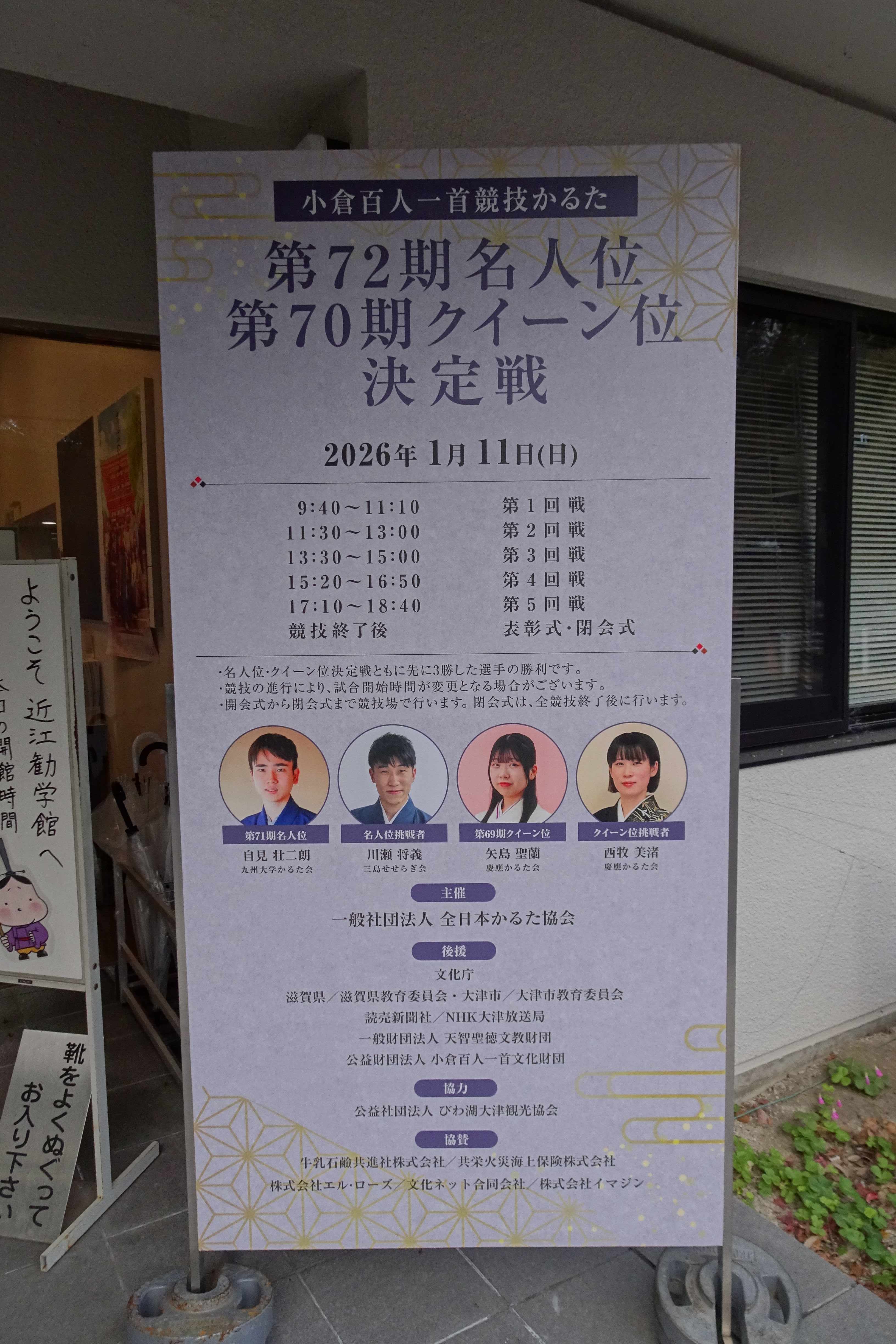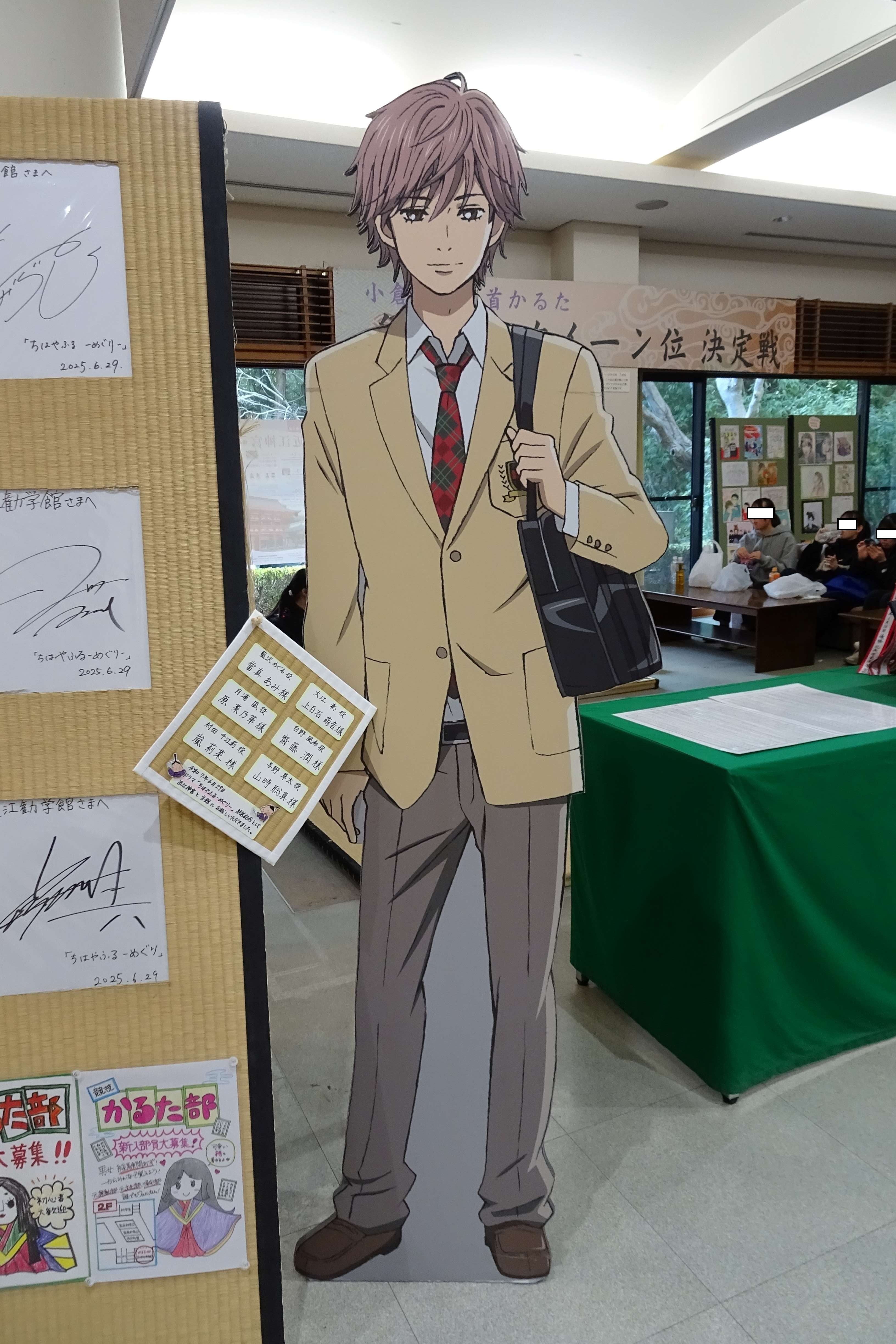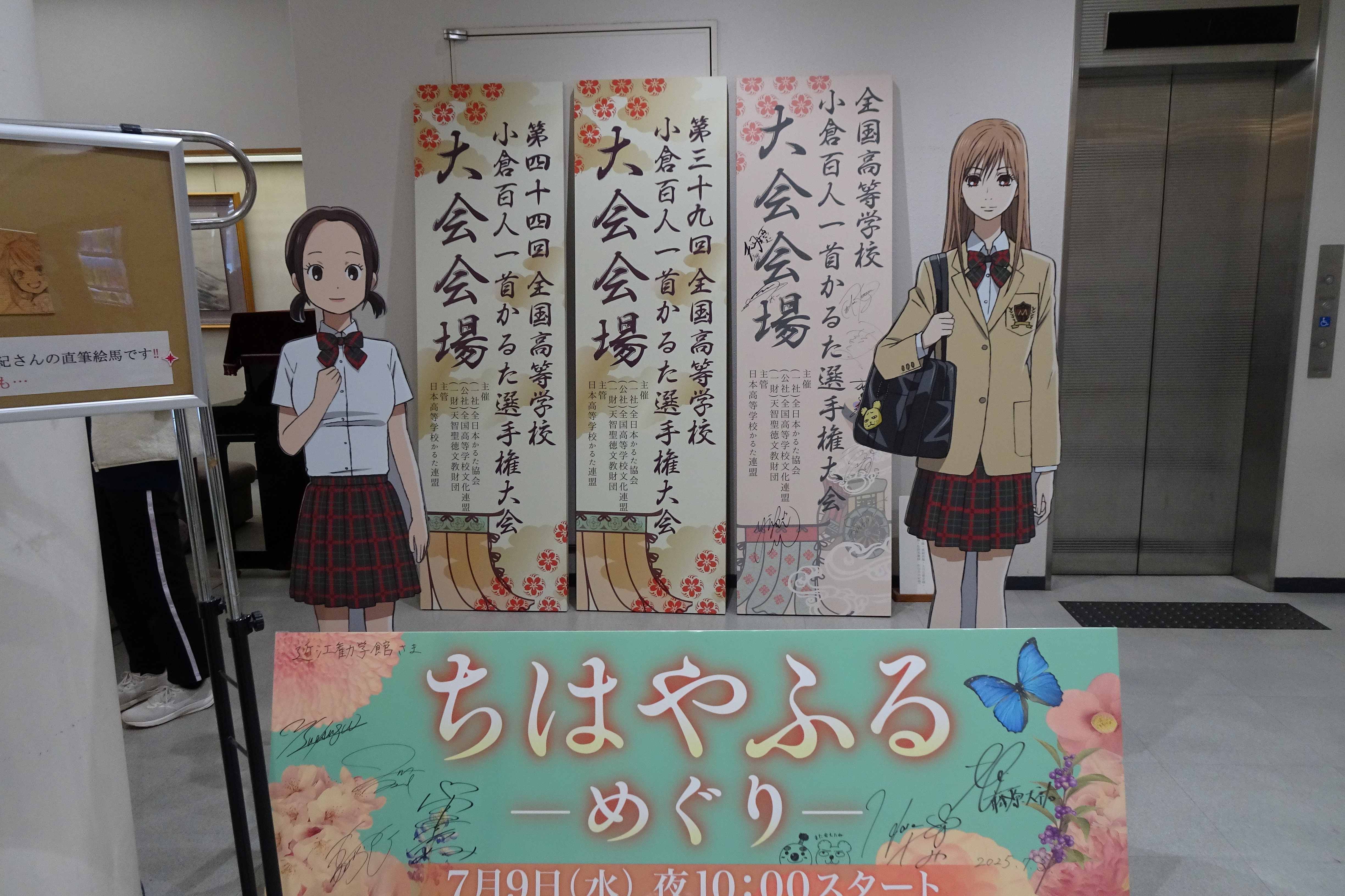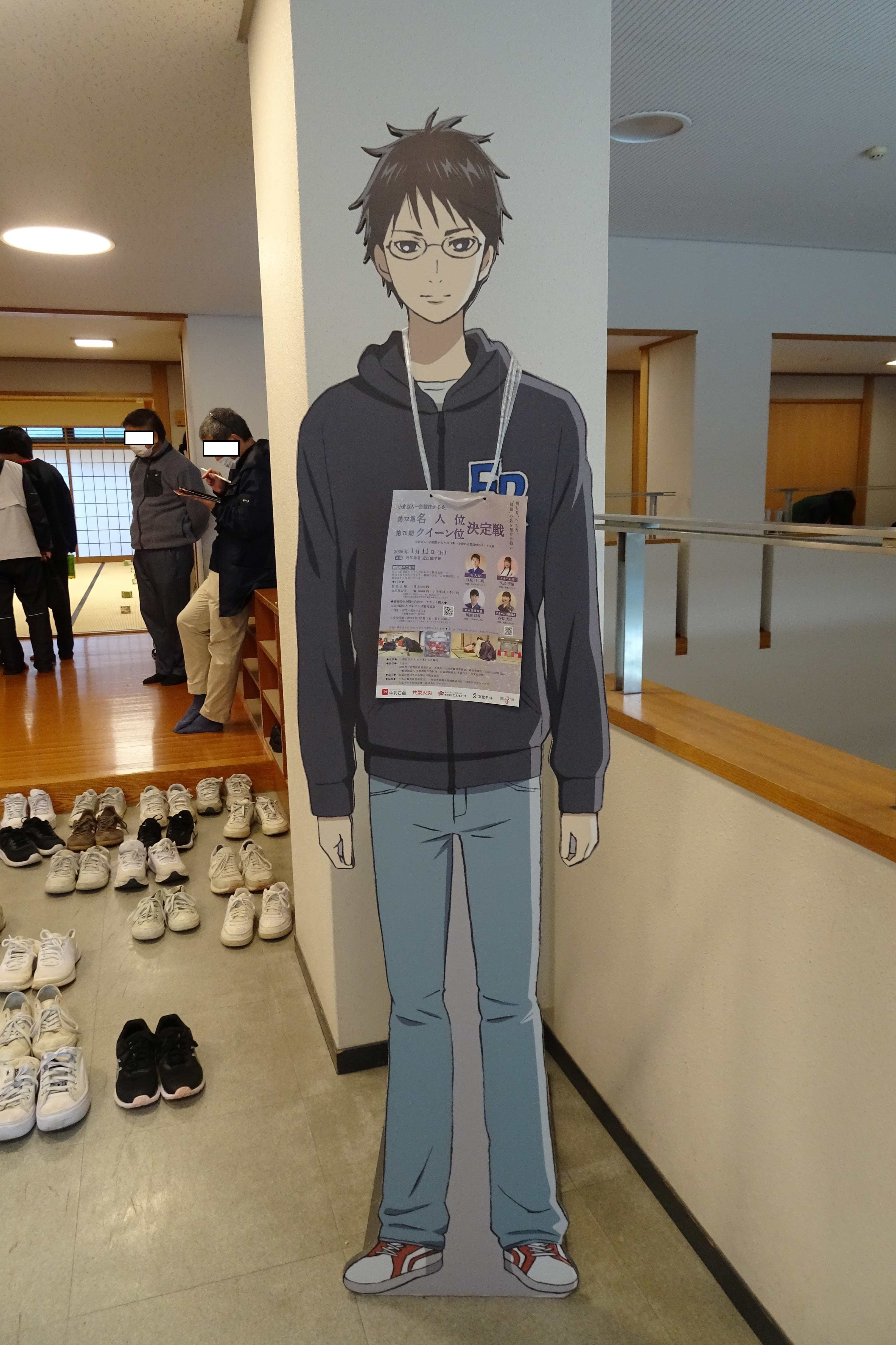 トップ > ヱビスフォト > 季節の写真 > 近江勧学館 なおなおっぴ 2026/03/24 00:47 近江勧学館 境内の一番右奥にある近江勧学館にも行きました。 兵庫県の高校4校がかるたの合宿をしていました。 2階の広間で稽古をしています。 広間には、かるたが置かれていました。 おおつ光ルくんがここにもいました。 そして「ちはやふる」のキャラクターも。 机くんのノートです。 たぶん合宿などをした方々がいろいろ書き込んでいるのでしょう。 作者光臨です。 「ちはやふる」の商品が並んでいました。 商品を買うともらえるカレンダーです。 実は卓上カレンダーを買ってもらいました。 いいね 共有する 共有する X facebook LINE リンクをコピー コメントする 2 件の返信 (新着順) ミュートしたユーザーの投稿です。 投稿を表示 やっとこさ~ 2026/03/24 22:10 なおなおなおっぴさん、 ちはやふる。 高校生のかるた部なんて地味なクラブ活動、と思っていましたが運動部そのものでした🤭 いいね 返信する ミュートしたユーザーの投稿です。 投稿を表示 なおなおっぴ 2026/03/25 00:55 やっとこさ~さん あの素早い動きを続けるのは、体力も動体視力もいりますよね。 いいね 返信する ミュートしたユーザーの投稿です。 投稿を表示 legacy 2026/03/24 17:39 ちはやふるって、聞いたことありますけど中身は知らないです、へー😎👍👏。 いいね 返信する ミュートしたユーザーの投稿です。 投稿を表示 なおなおっぴ 2026/03/25 00:53 legacyさん 面白いですよ。 いいね 返信する
