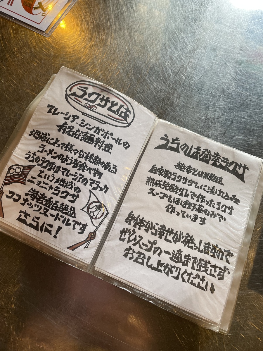 メニューに、ラクサについて書かれていました。