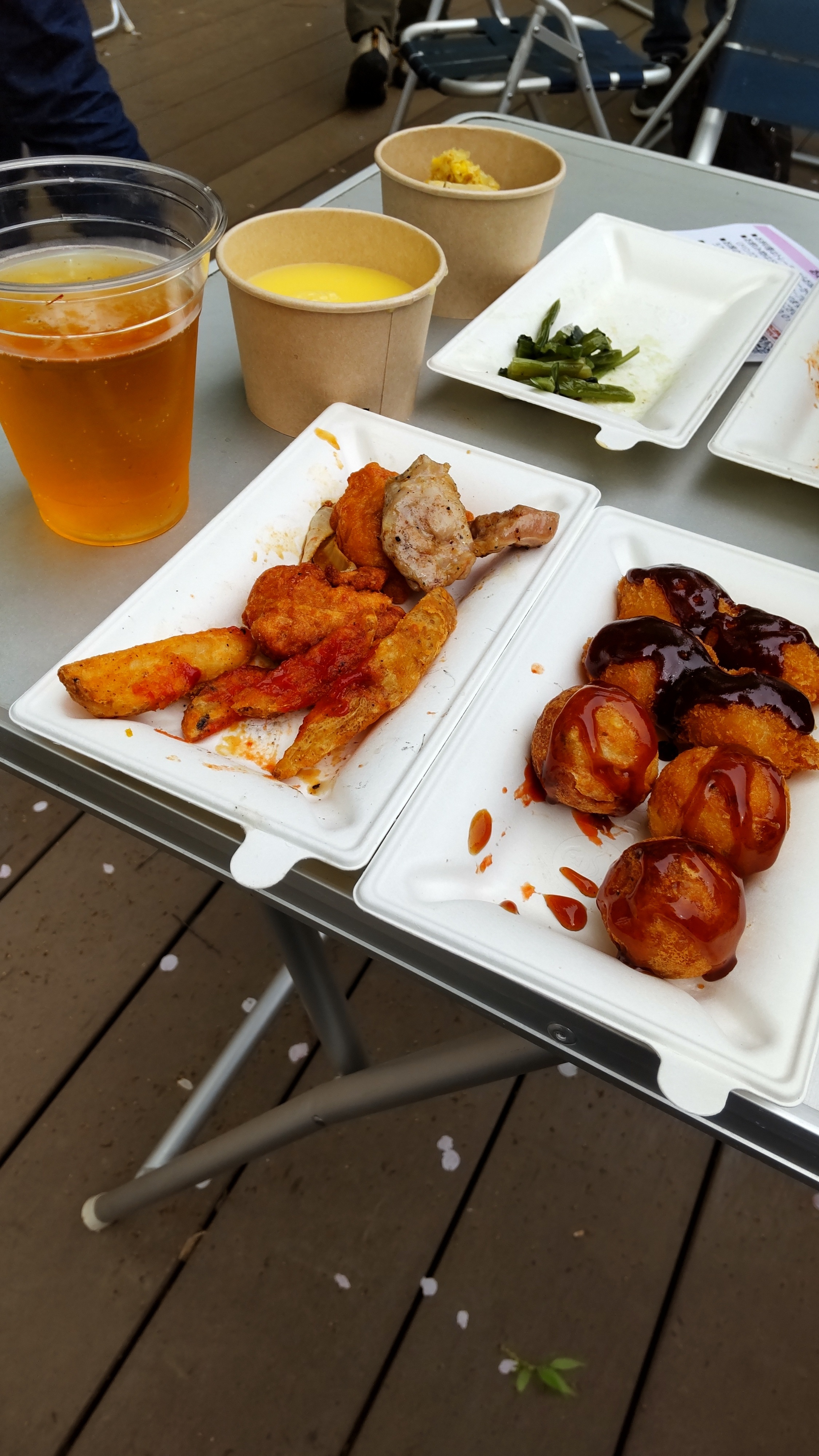 メインの焼肉ですが、ジンギスカンをはじめとして、ウインナー、カルビ、ホルモン、鶏肉等ありましたが、ビジュアル的にアレなので掲載を控えさせていただきます。🙇♂