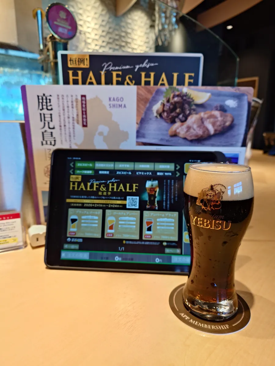 駅前の🍺YEBISU BARで店舗限定メニュー🐷