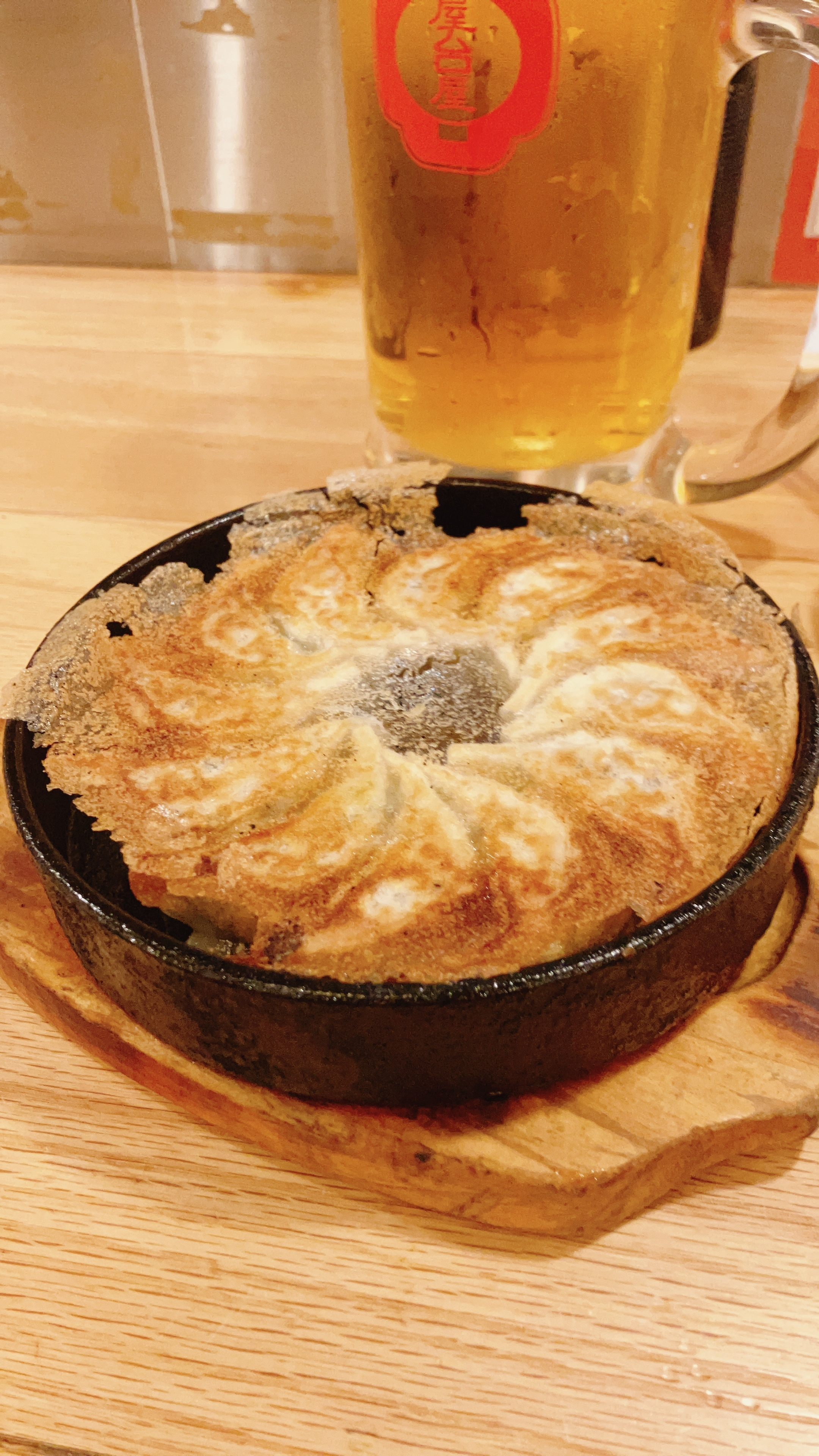 プレミアム昇格特典の餃子10人前60個無料(2人前12個セットクーポン×5つ)の内、2セット目を行使。いやー小ぶりですがこの皮がパリパリで中身の味も抜群!ここ最近食べた餃子では群を抜いてますね。通常ジョッキ¥694円で強制メガジョッキ(1