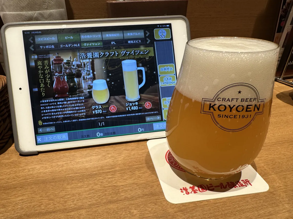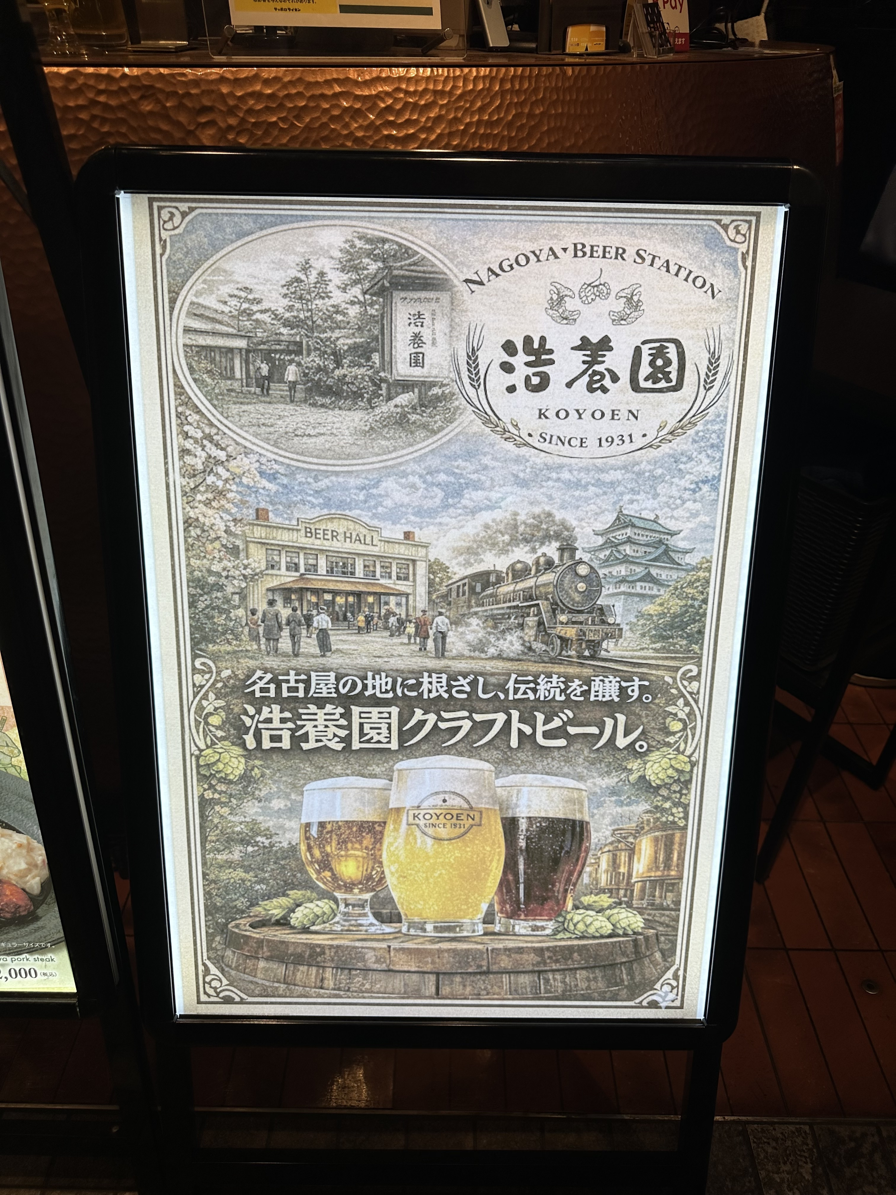 名古屋駅のこちらのお店は改装の際に名古屋らしい特徴を出そうと言う事で千種区にある浩養園製造のビールを出すお店に業態を変えたそうです。