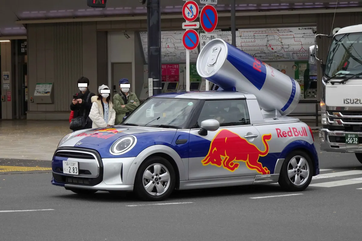 JR千駄ヶ谷駅前のRed Bullカーです。