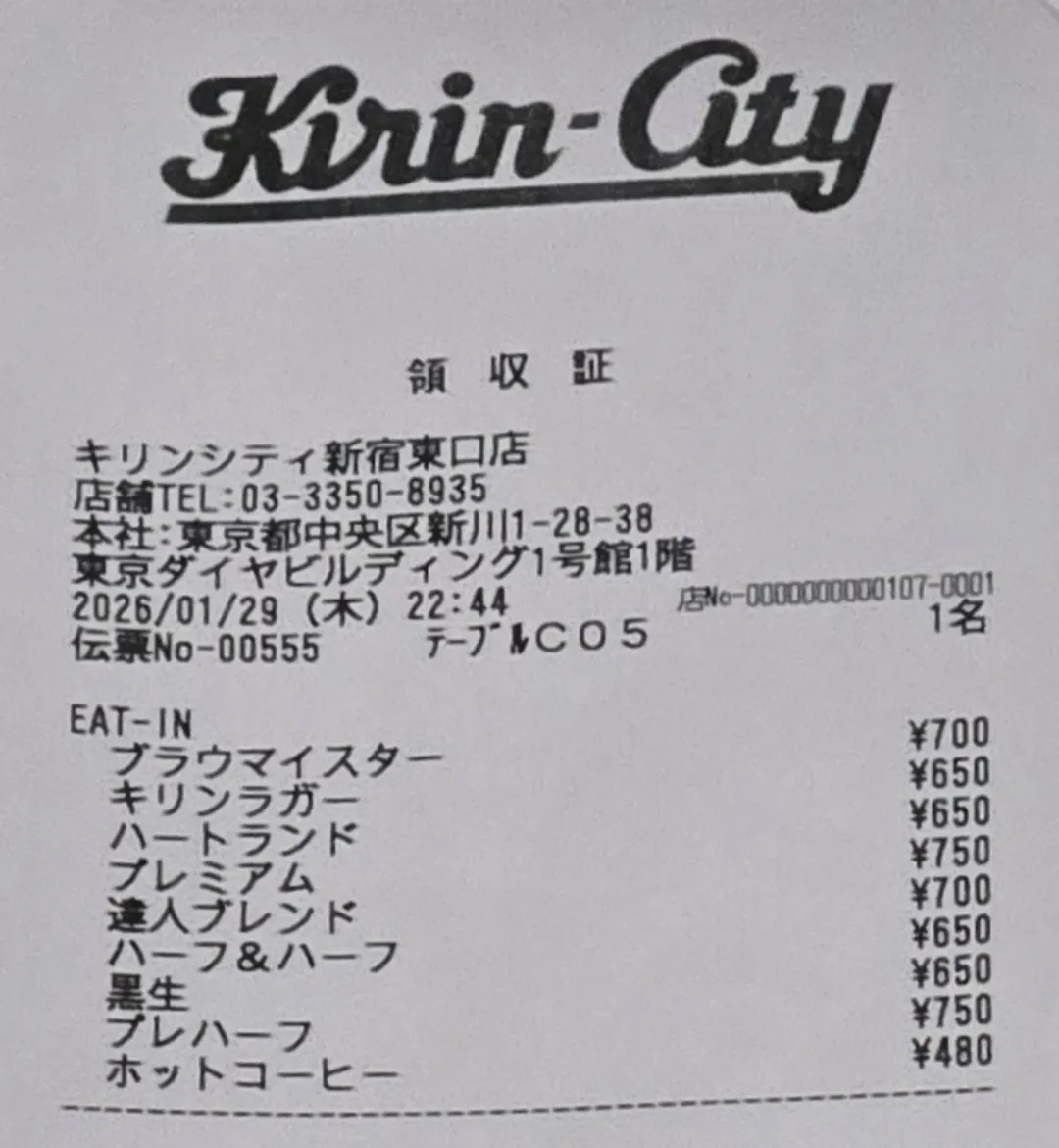 昨日の話ですが、1軒目に3・6・5酒場に行った後、2軒目靖国通りを新宿駅方面に渡り、Kirin City新宿東口店へ行きました🍺