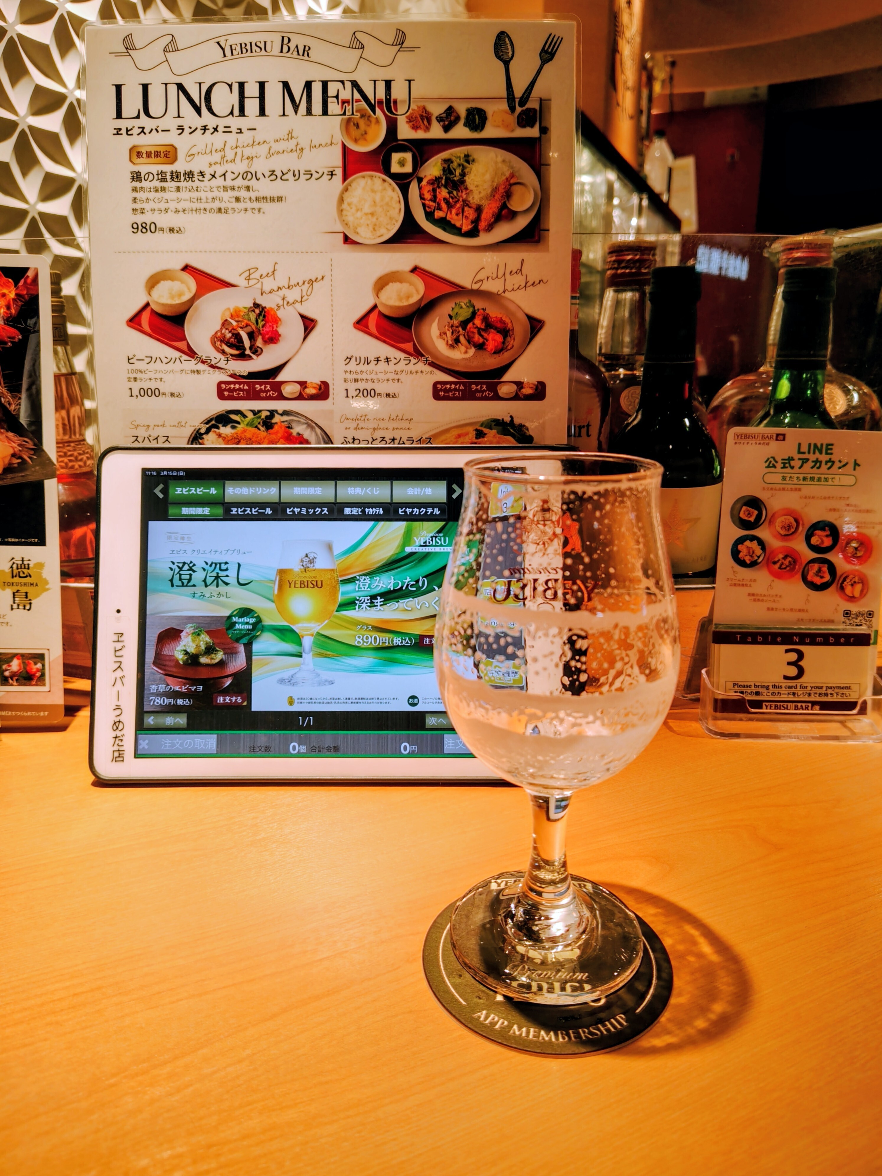 3日通ったヱビスバーうめだ店…