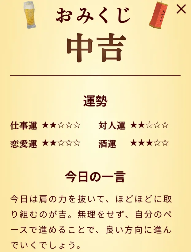 と、ちょっとお店を探してみたい私の今日の運勢は、仕事運低めの中吉でした。