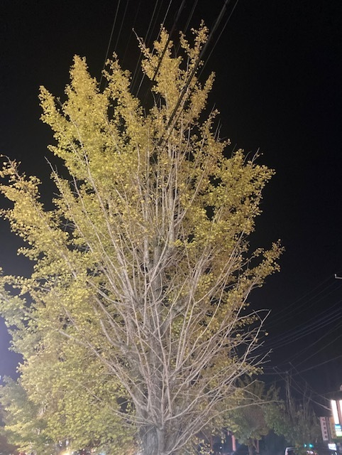 通りのイチョウの葉が色づいてきました