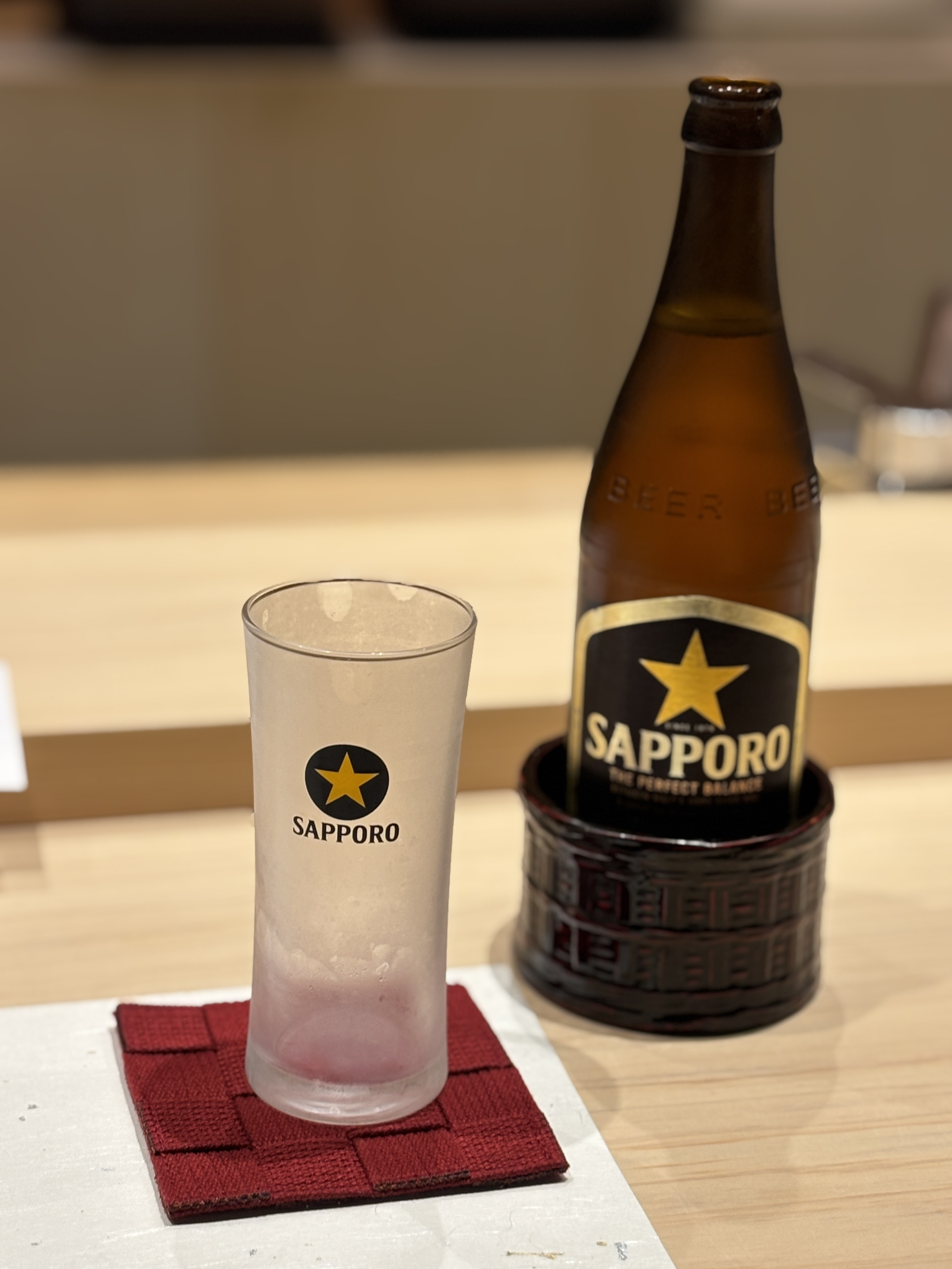 私は普段、生のお魚には基本的に日本酒を合わせてしまうので、こちらでビールを頼むのは初めてでした。(すっごい久しぶりに袴を履いたビール瓶を見ました!)