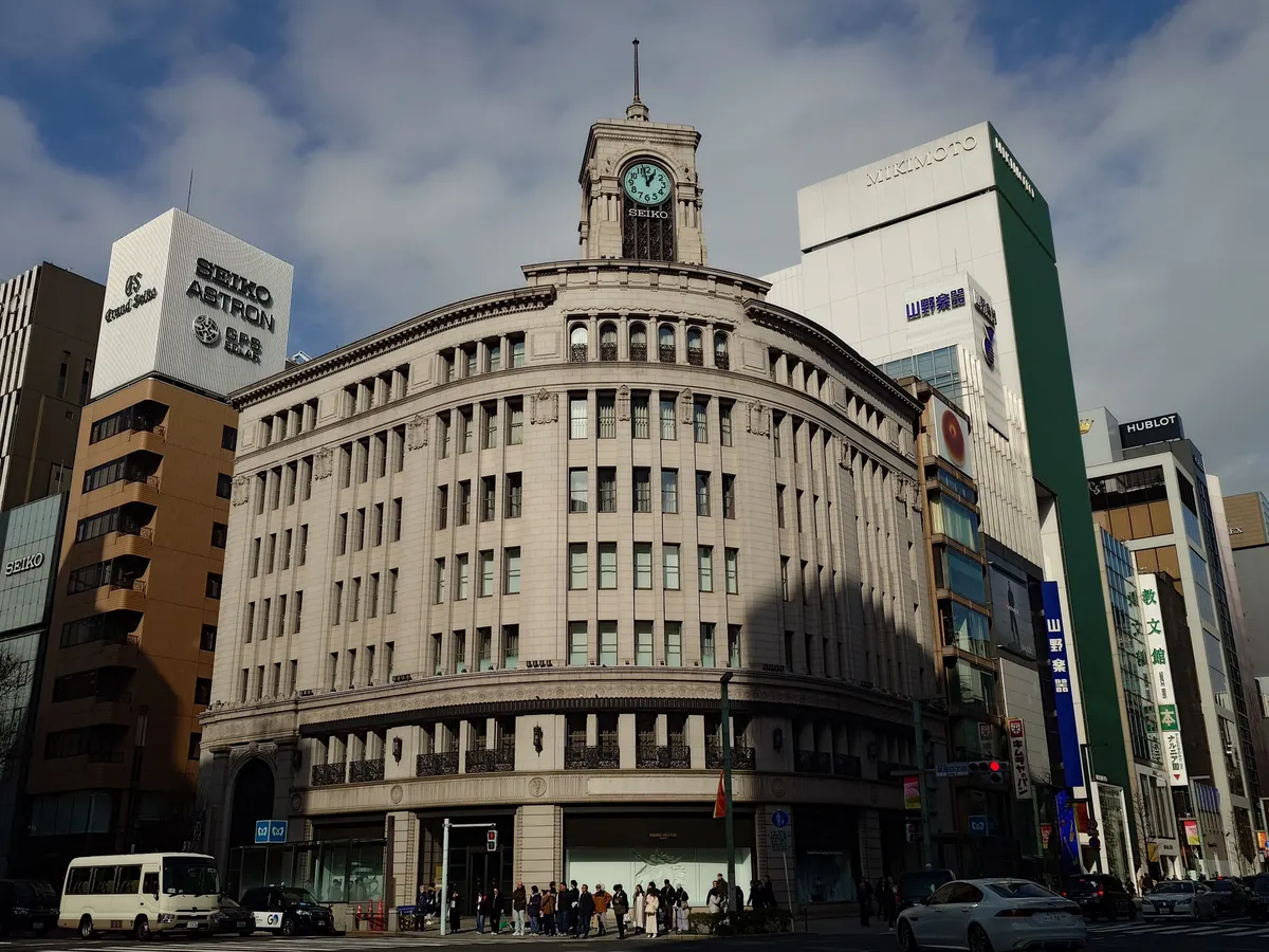 三越の向かい側⌚セイコーハウスの時計塔。チョイと日陰がなぁ😅