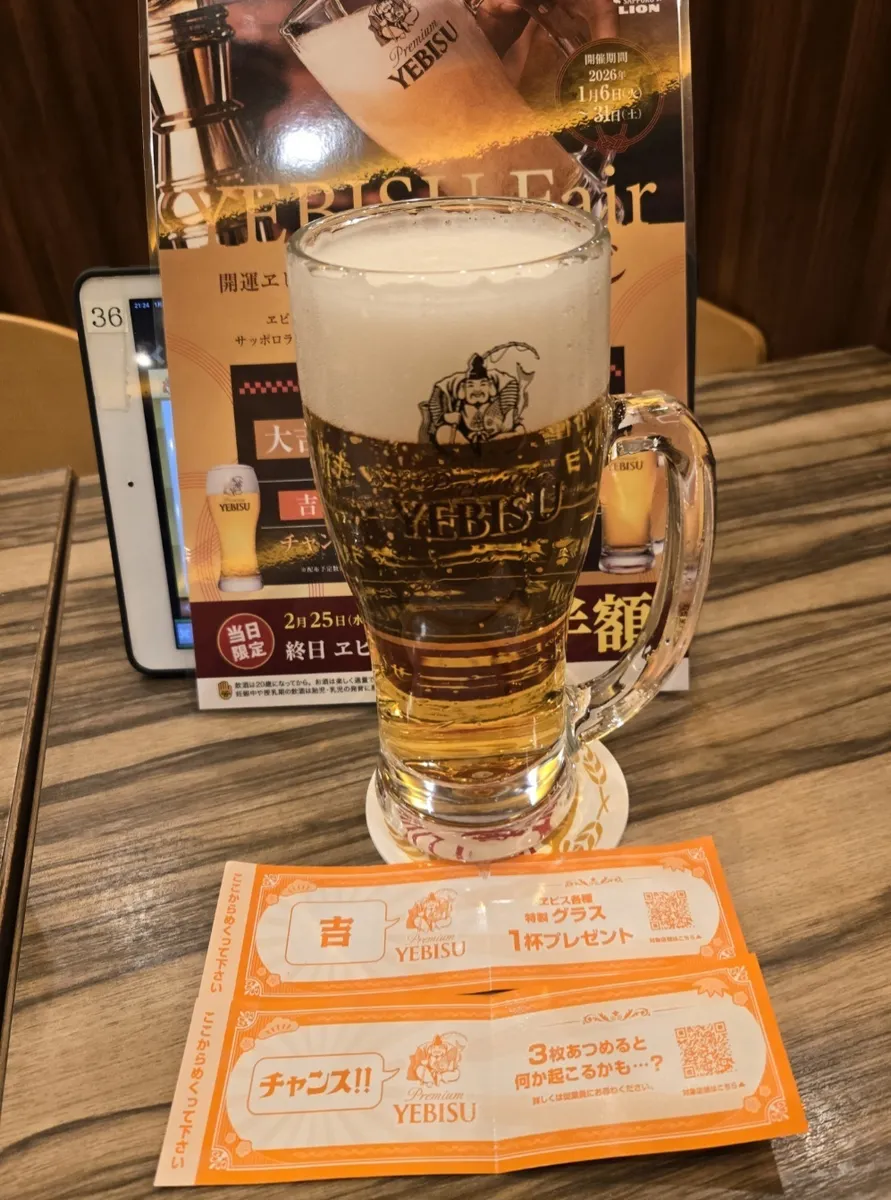 ヱビスビール2杯🍺🍺