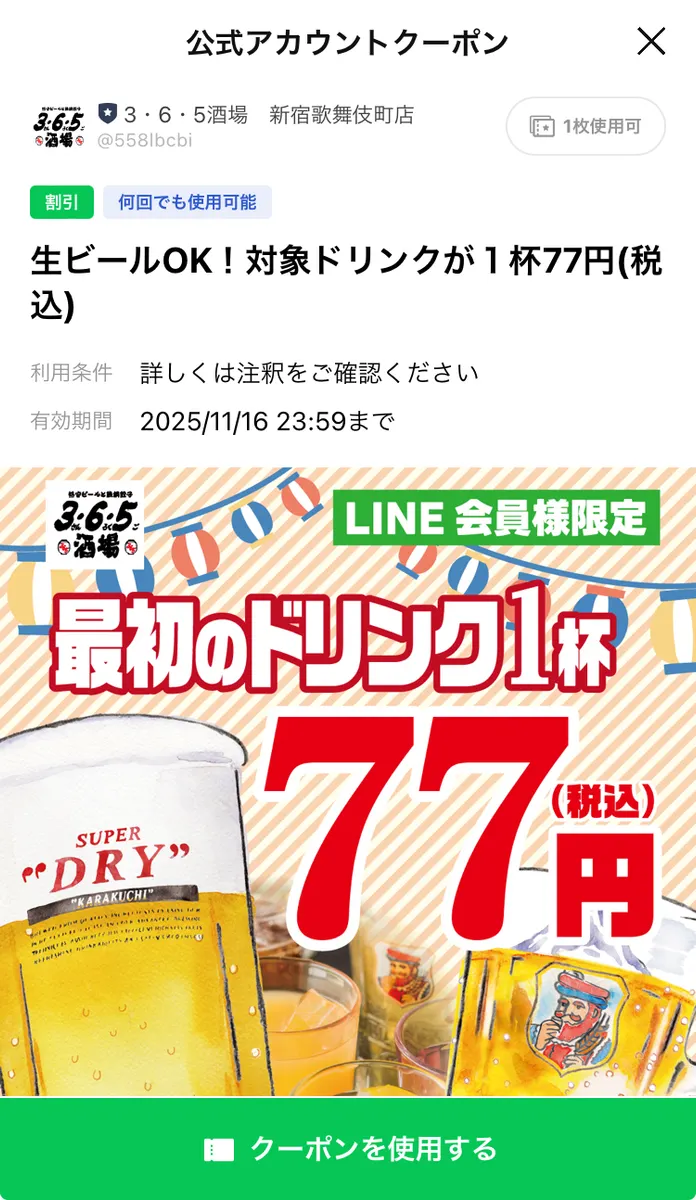 ビヤホールライオン新宿店3杯 クジ:ハズレ1