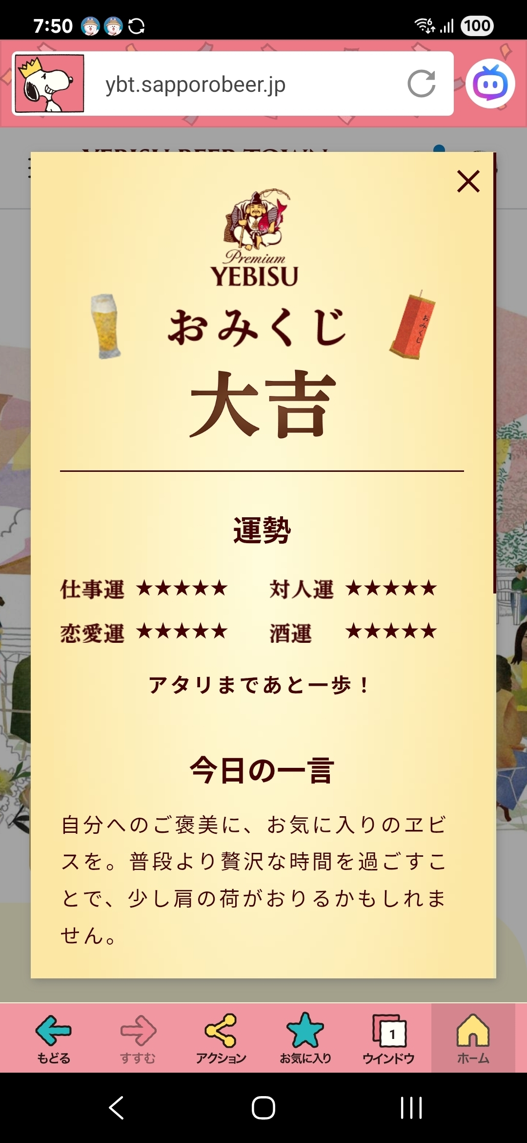 トップ > ヱビスフォト > ヱビス > 大吉⤴️⤴️ はんまーへっど 2026/03/14 07:53 大吉⤴️⤴️ 久しぶり“大吉”⤴️⤴️ 実は昨日も ネコ🐱おみくじ おみくじ 運勢 大吉 久しぶり いいね 共有する 共有する X facebook LINE リンクをコピー コメントする 0 件の返信 (新着順)