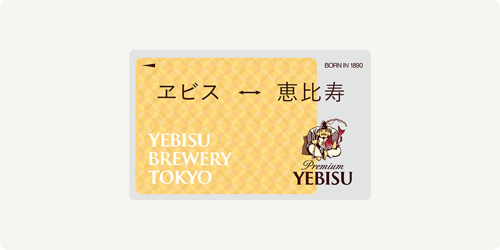 地名「恵比寿」が「ヱビスビール」にちなんで名づけられたことに着想を得た、ICカードステッカー。ICカードに貼ることで毎日の移動が少したのしくなるアイテムです。