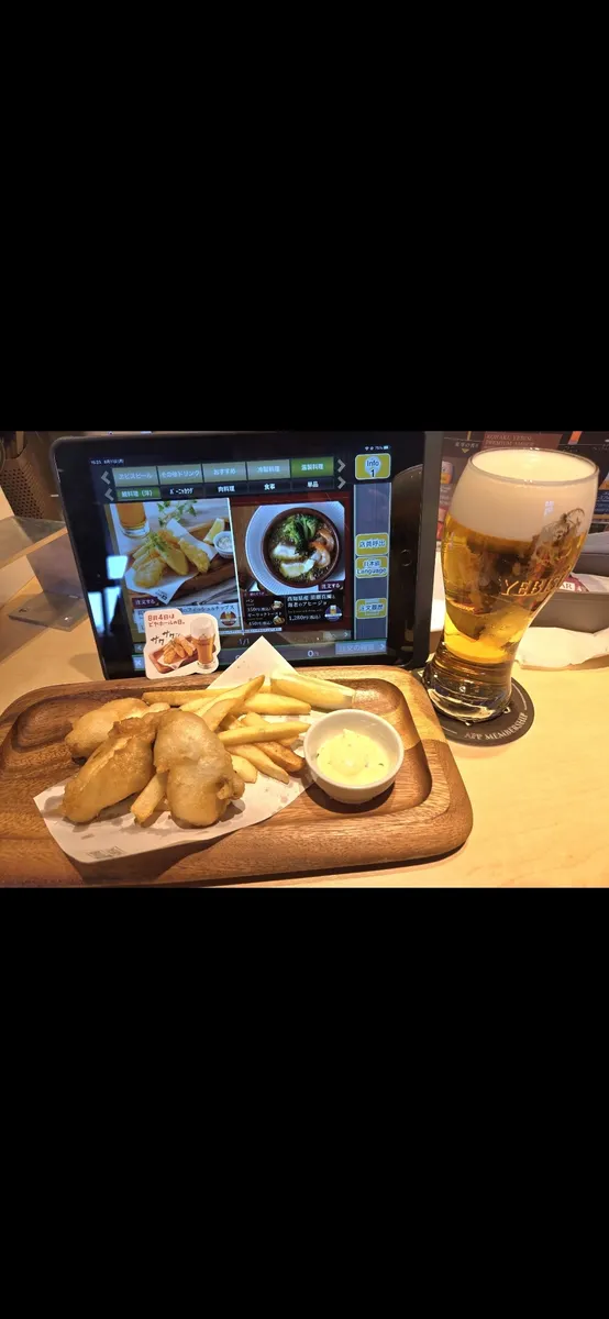 5枚目はヱビスバー、フィッシュ&チップスとヱビスビール🍺